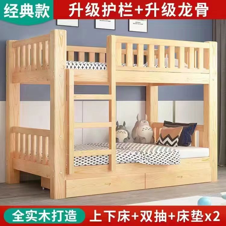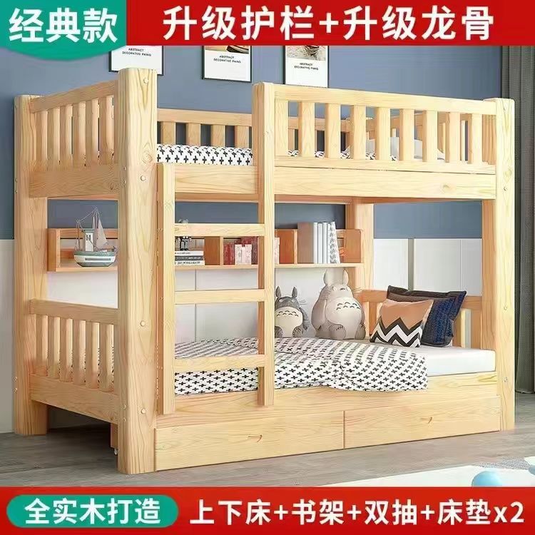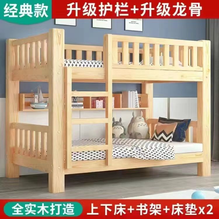 상단 침대 2 층 어머니-자식 침대 홈 어린이 기숙사 최상층 침대 두꺼운 단단한 나무 침대 높은-낮은 침대 침대스토어 가기