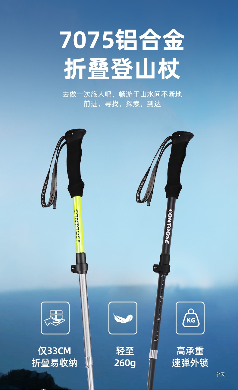 전문 야외 등산 스틱 탄소 섬유 접히는 미끄럼 방지 목발 스틱 다기능 등산 하이킹 Yutian 공장