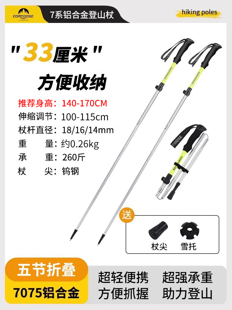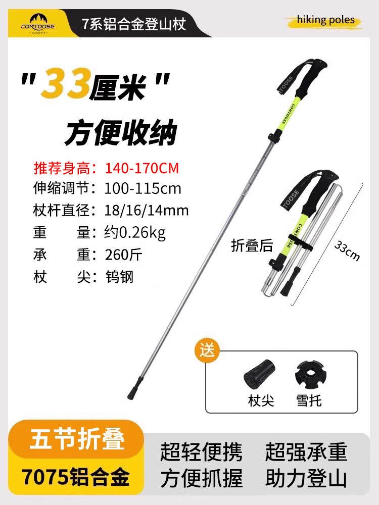 • [7075 알루미늄 합금 접이식 쇼트 스타일] 형광 그린 [컴팩트 수납] (10년 사용)
