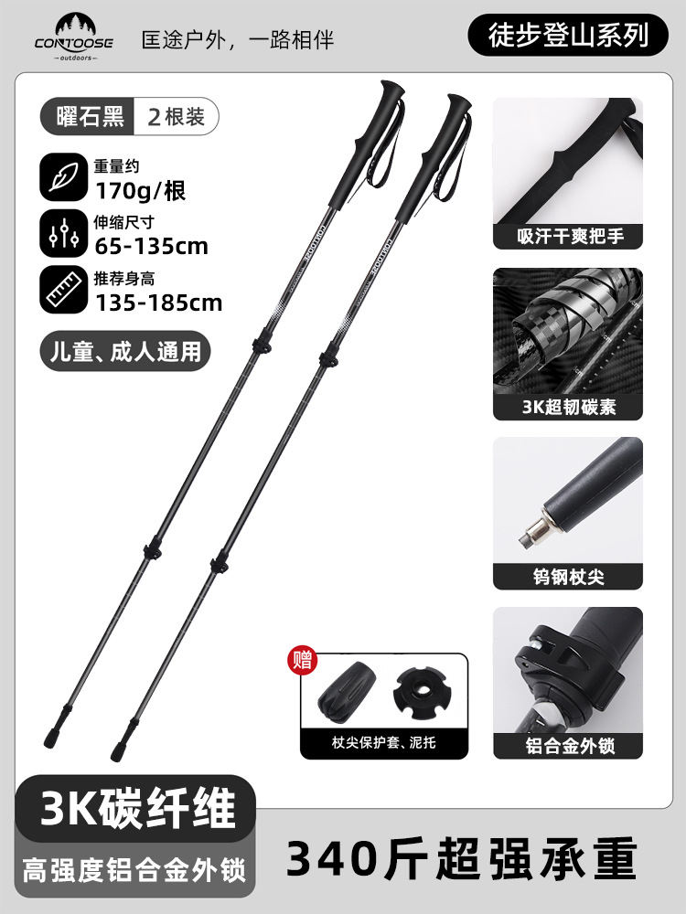 • ✅[초경량 3단 탄소섬유] 옵시디언 블랙 [미끄럼 방지 및 땀흡수 EVA 손잡이] (무게 160G에 불과, 노동력 절약)