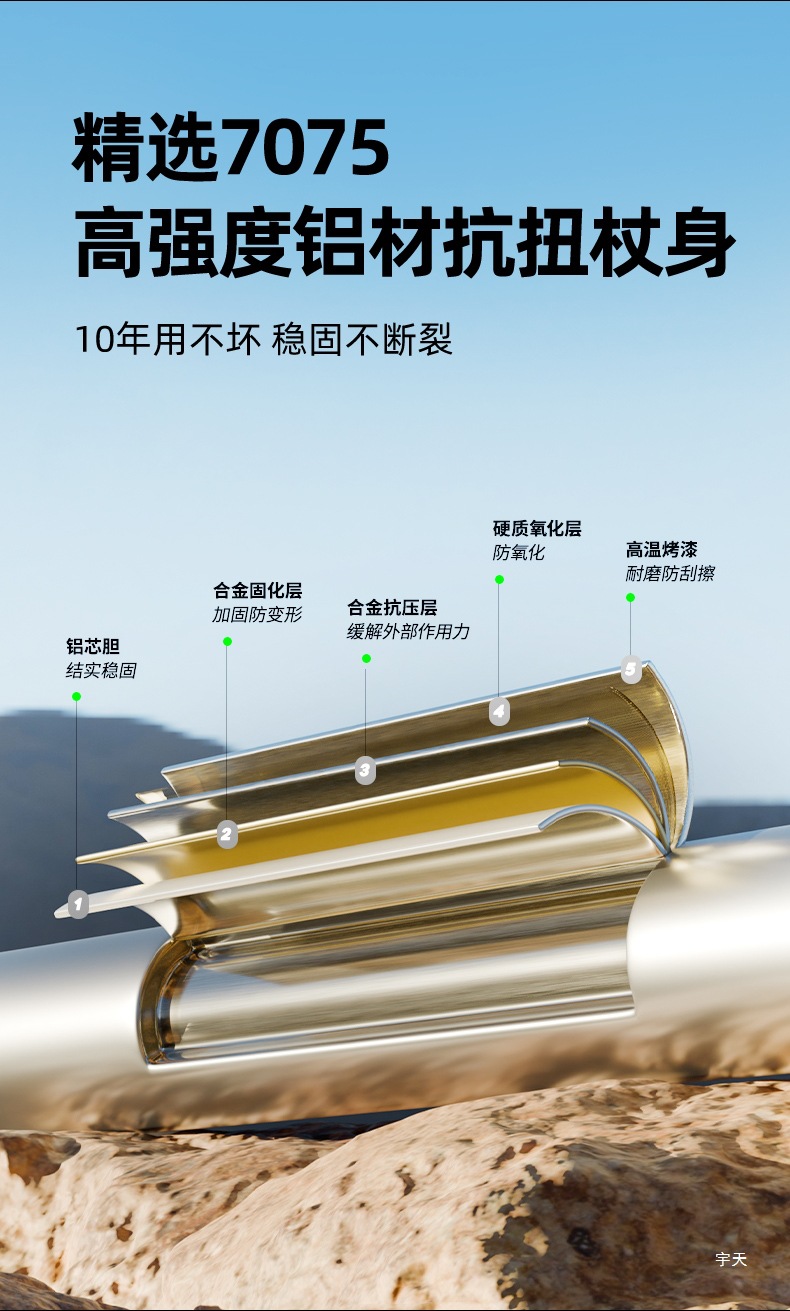 • [6061 알루미늄 합금 텔레스코픽 모델] Xuefeng Blue (스프링 충격 흡수 장치) [안정적이고 안전한 내부 잠금 장치]