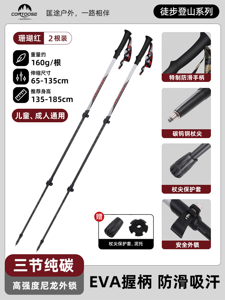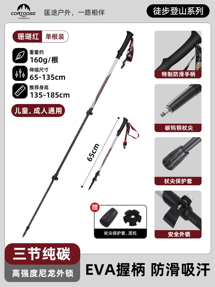 • ✅[초경량 3단 탄소섬유] 코랄레드 [미끄럼 방지 및 땀흡수 EVA 손잡이] (무게 160G에 불과, 노동력 절약)