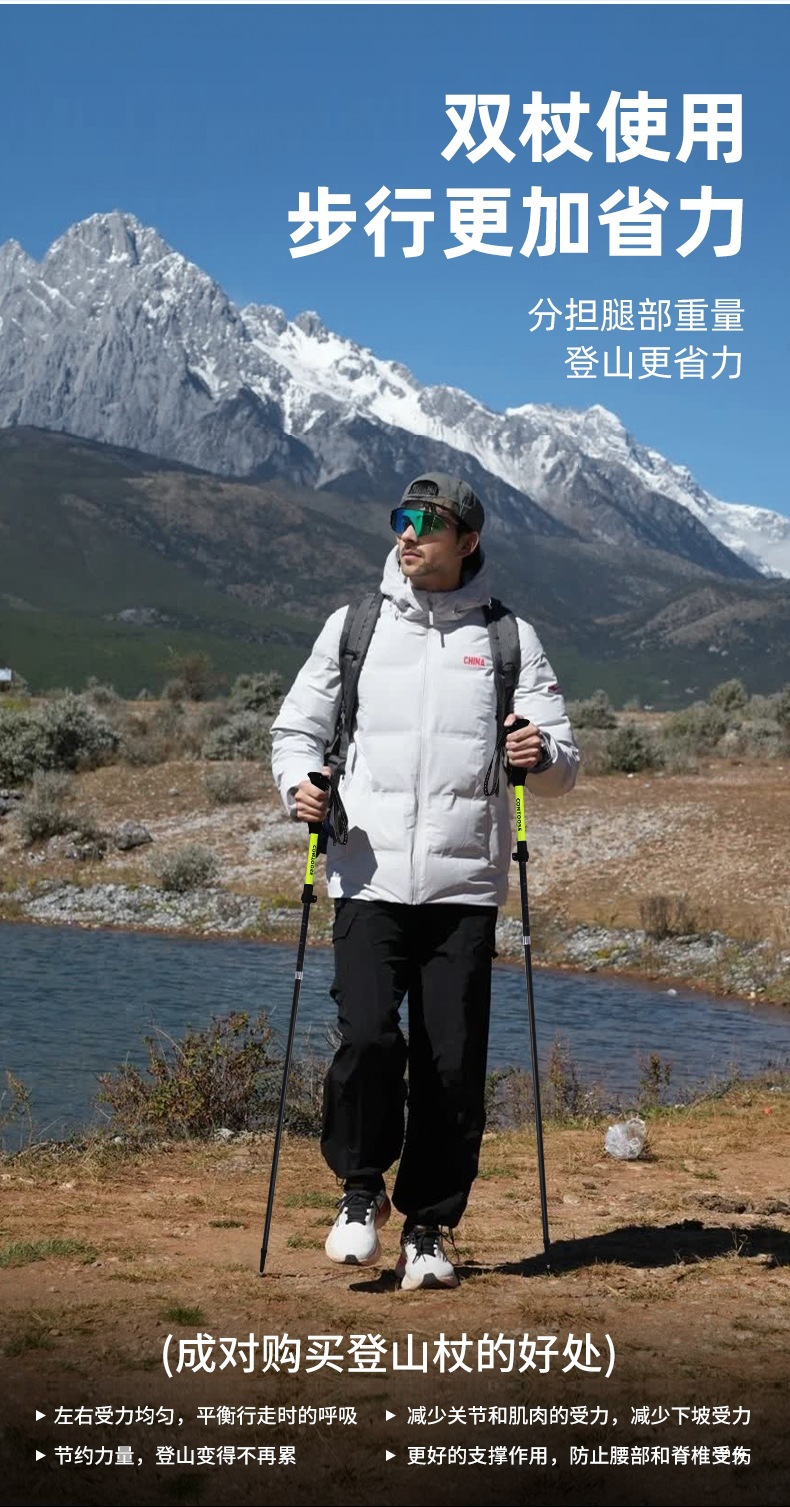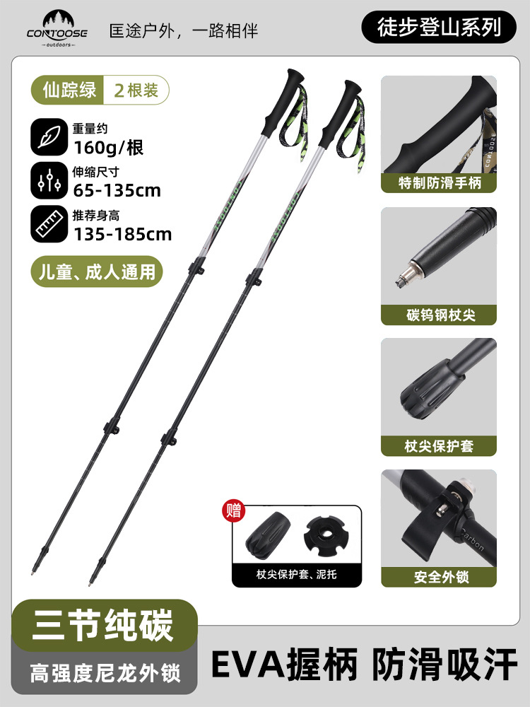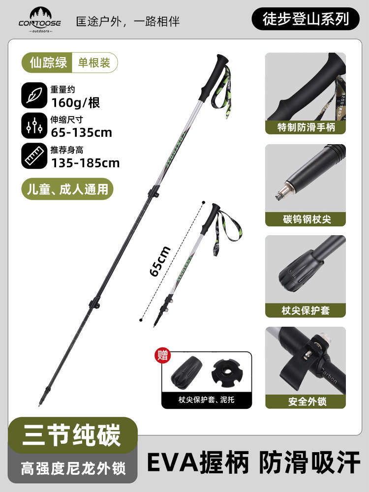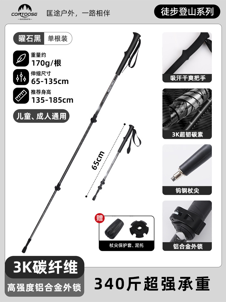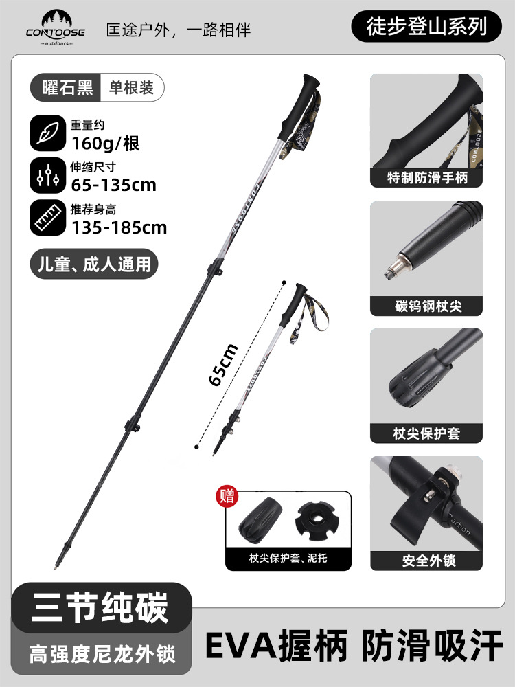 전문 야외 등산 스틱 탄소 섬유 접히는 미끄럼 방지 목발 스틱 다기능 등산 하이킹 Yutian 공장스토어 가기