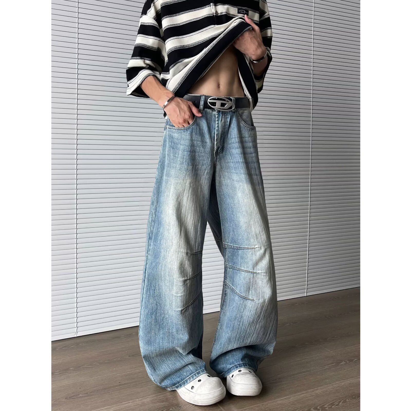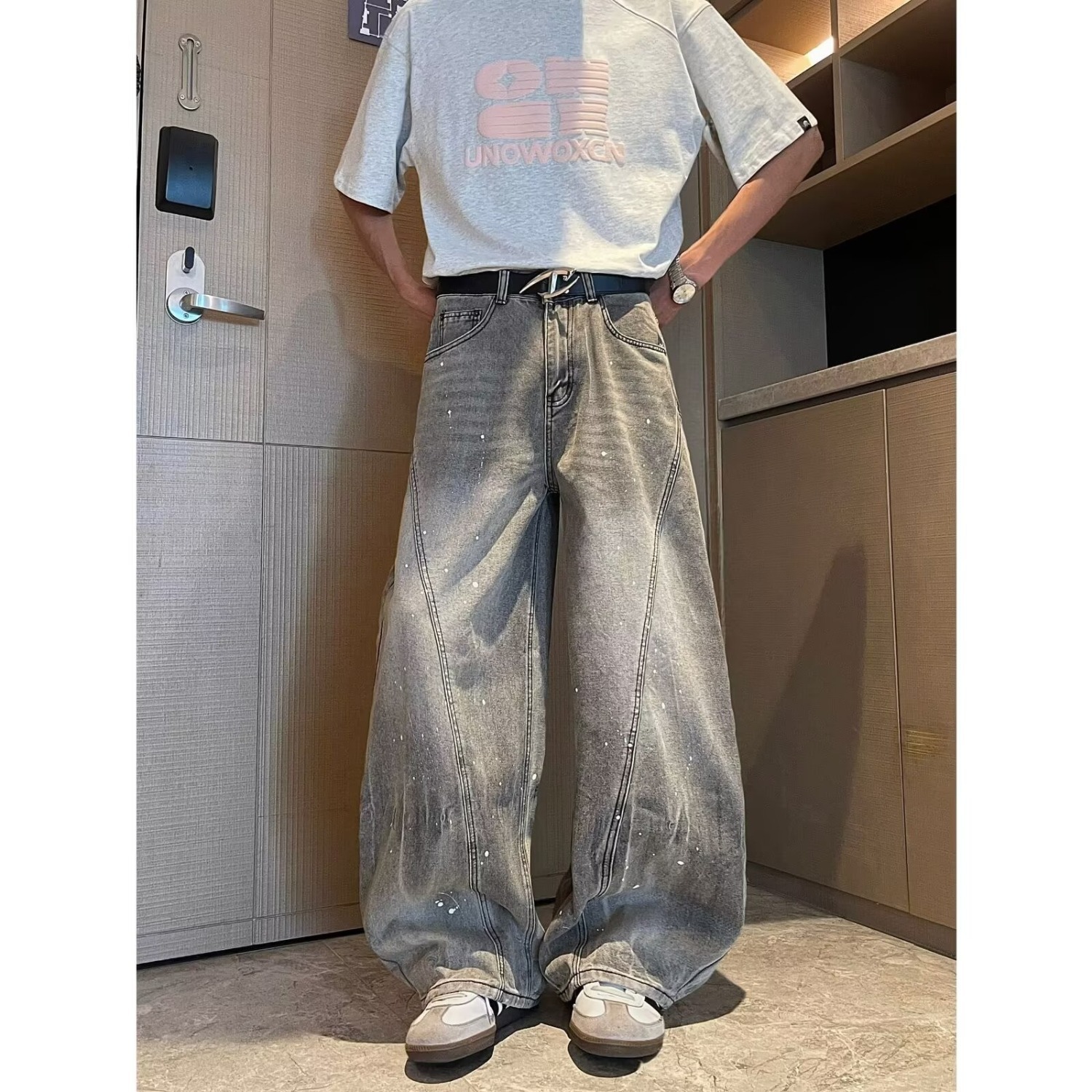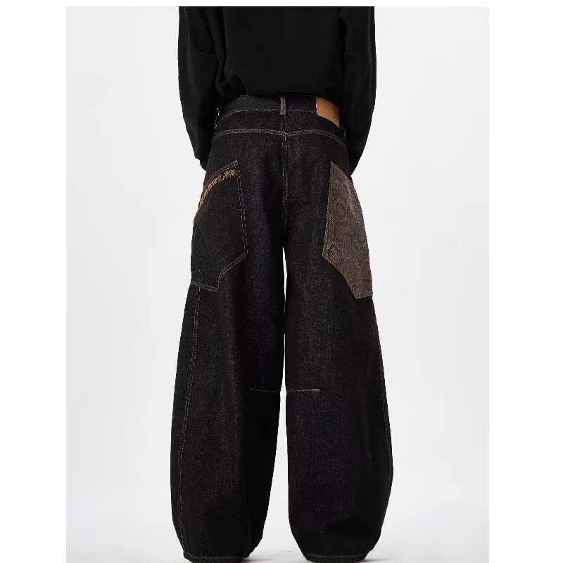아메리칸 스타일 레트로 대형 포켓 마체테 청바지 여성의 봄과 가을 뜨거운 소녀 하이 스트리트 디자인 느슨한 넓은 다리 바지스토어 가기