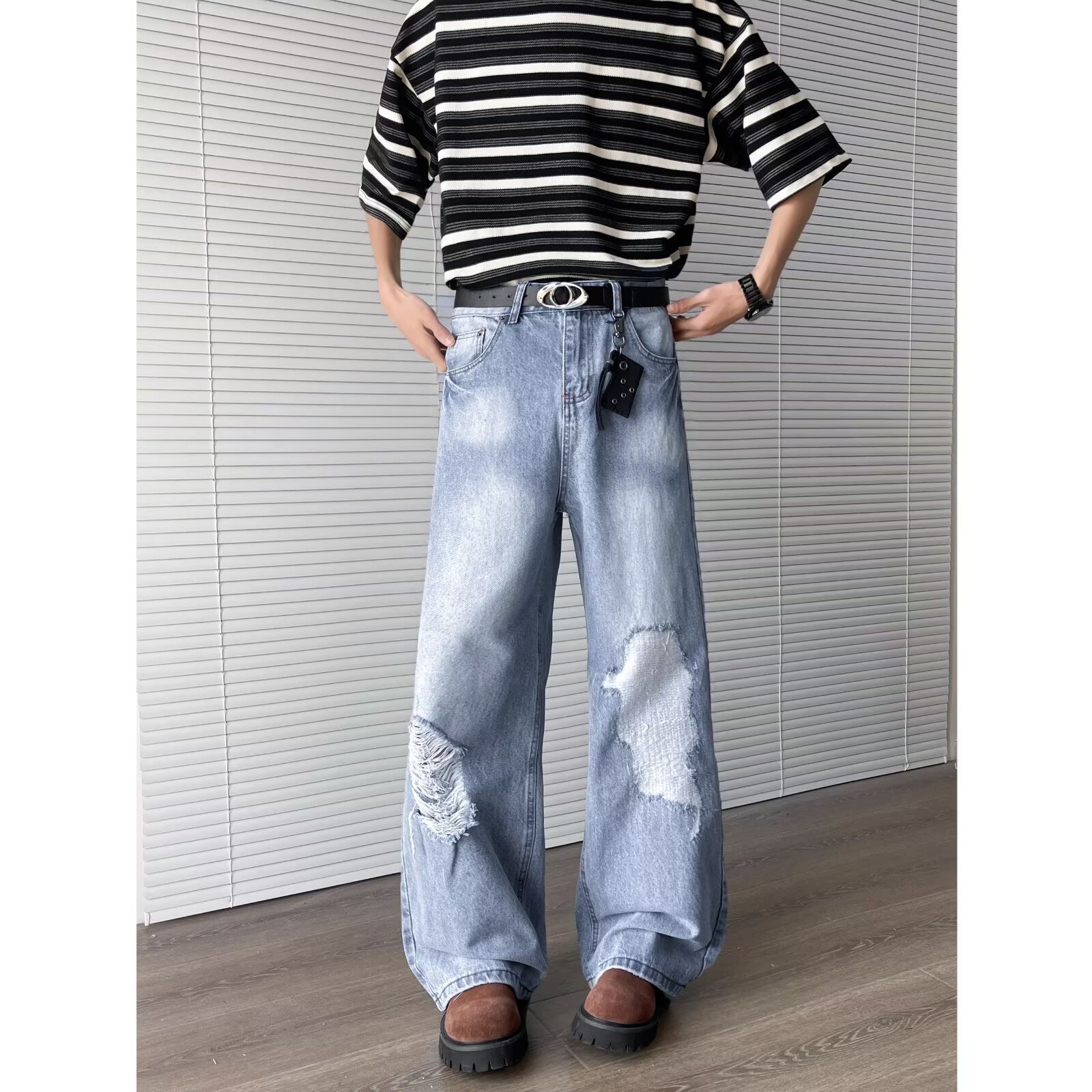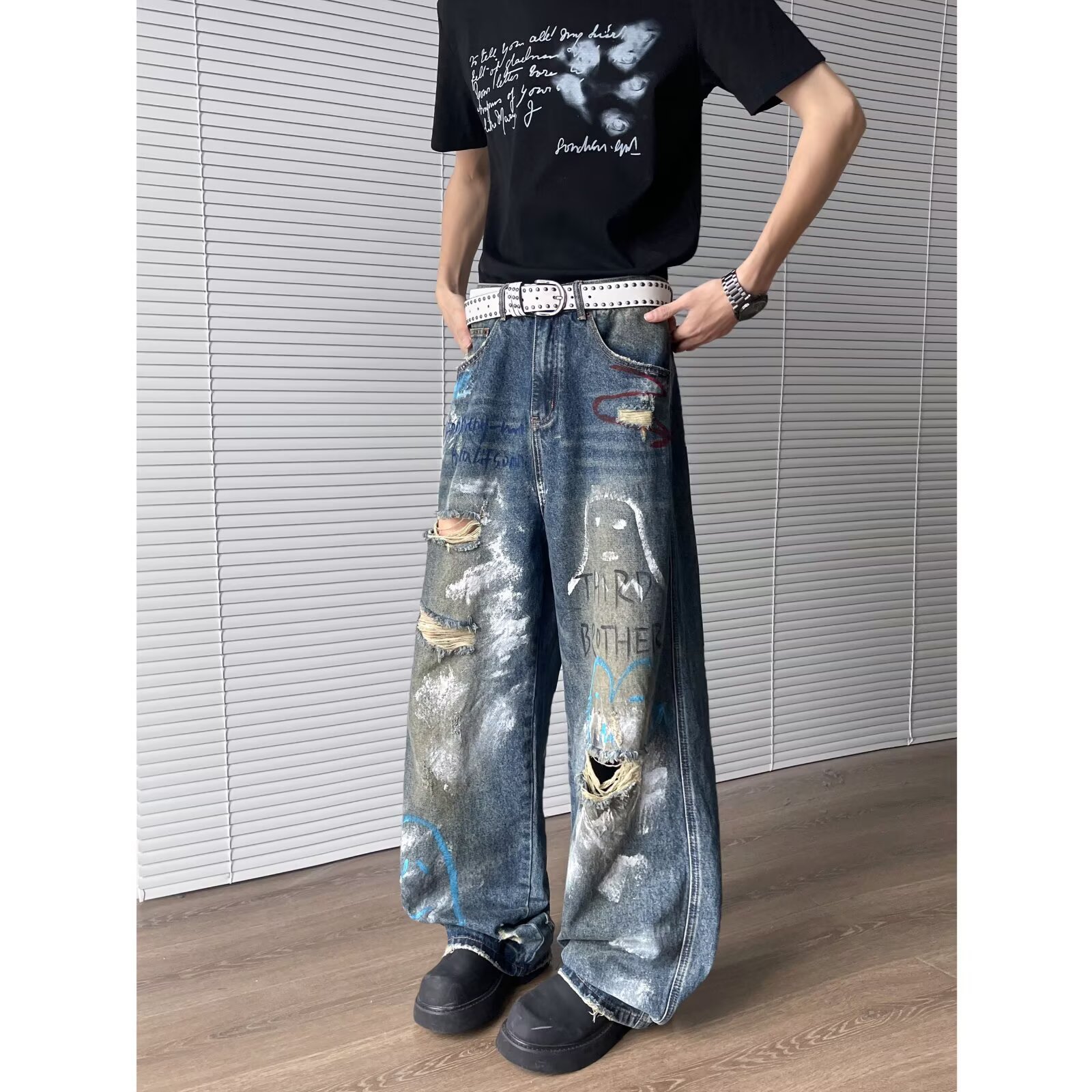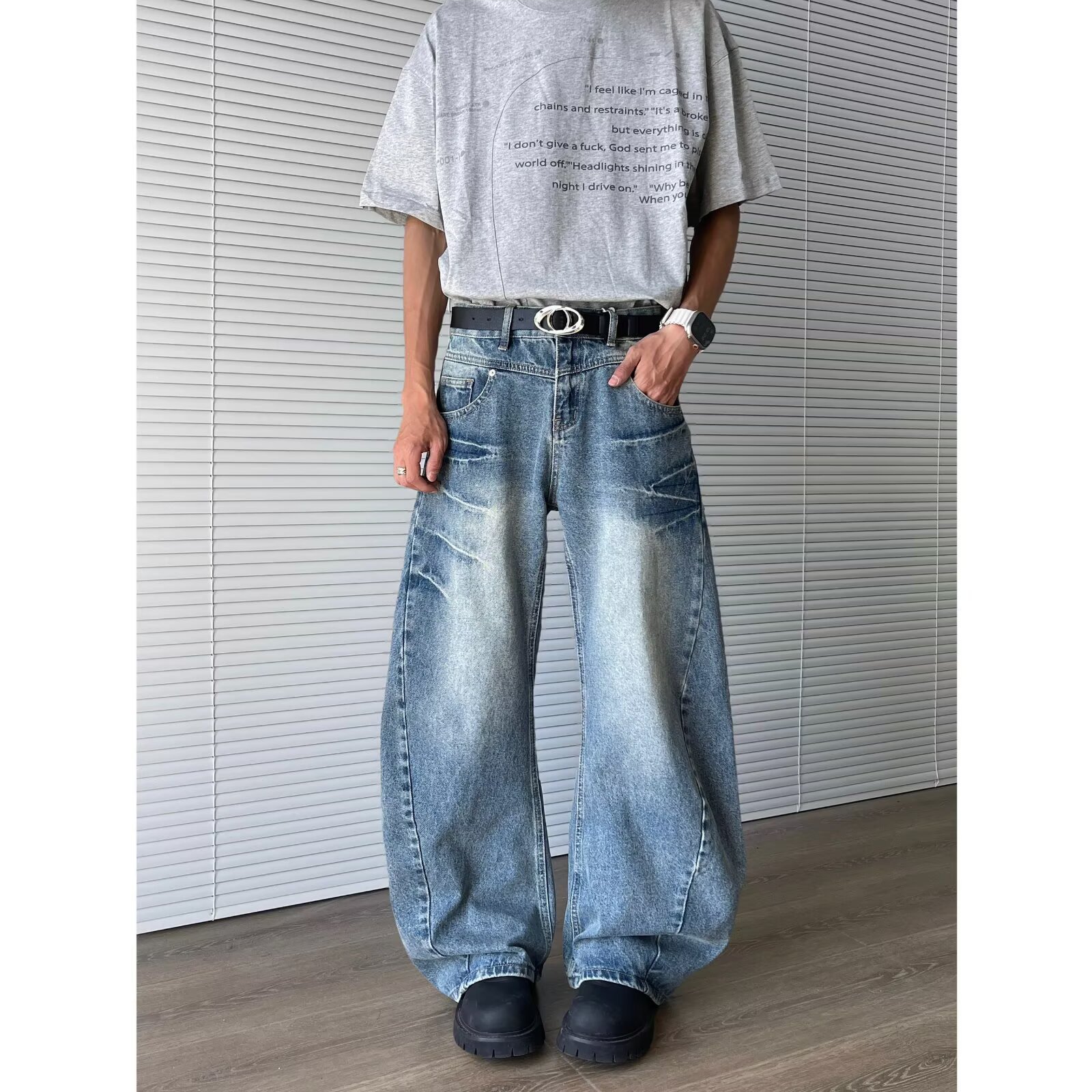 아메리칸 스타일 레트로 대형 포켓 마체테 청바지 여성의 봄과 가을 뜨거운 소녀 하이 스트리트 디자인 느슨한 넓은 다리 바지스토어 가기
