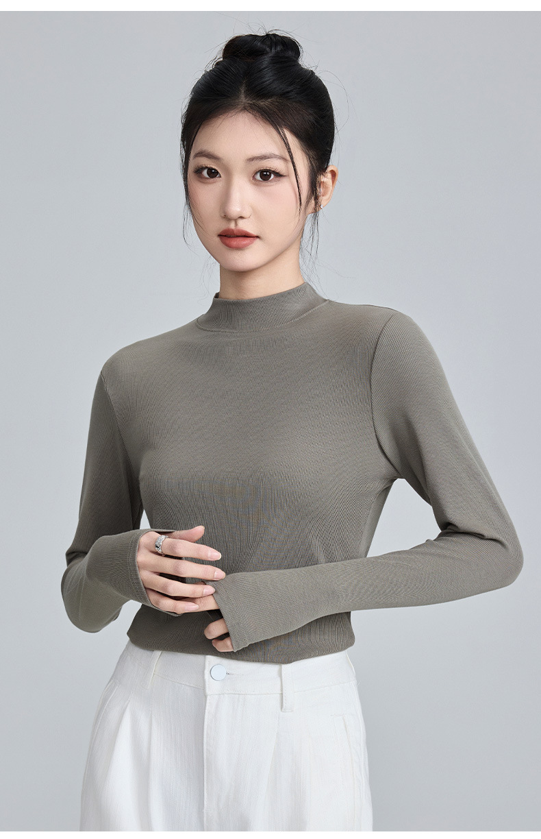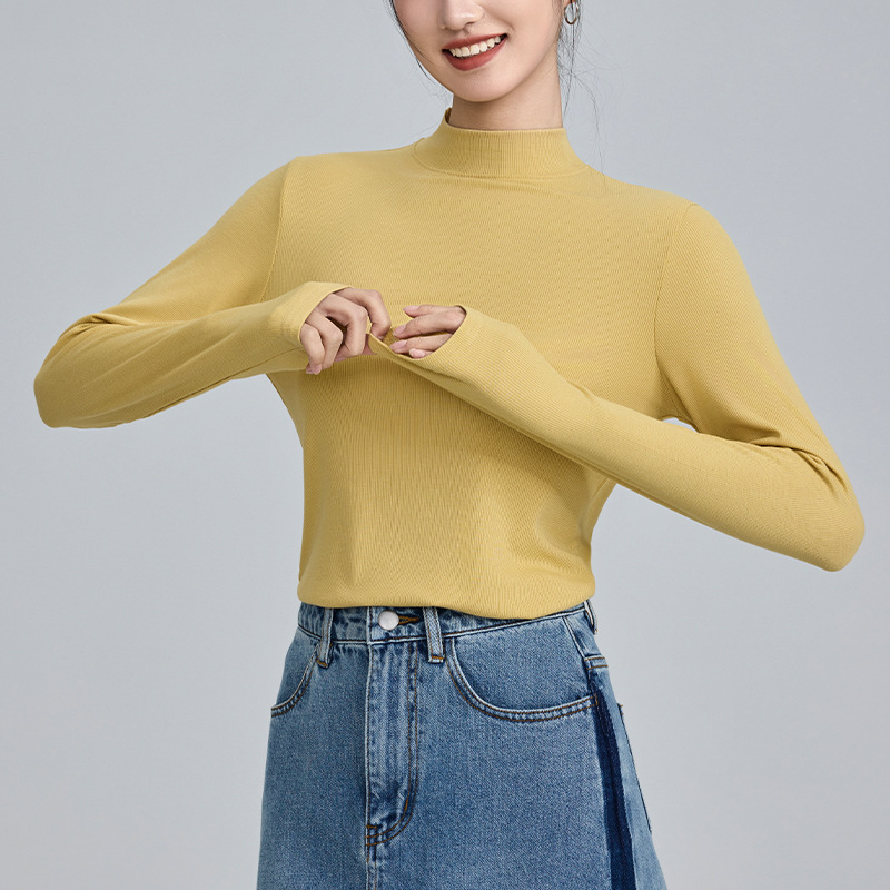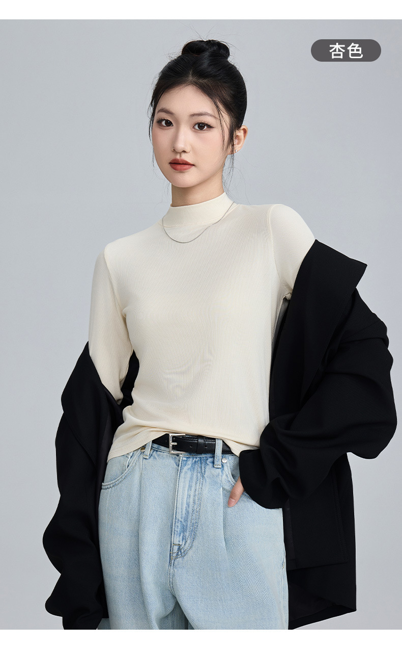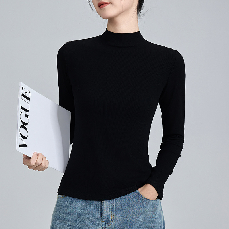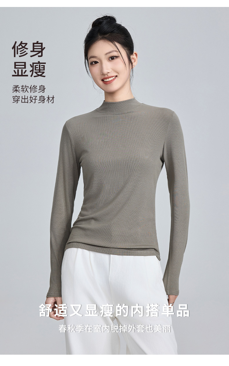 모달 고 탄성 반 높이 칼라베이스 셔츠 여성용 슬림 핏 긴팔 티셔츠 내복 외장 착용 2025 년 봄과 가을 신상스토어 가기