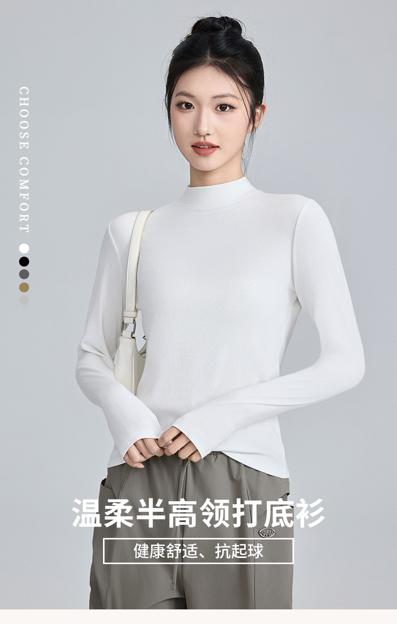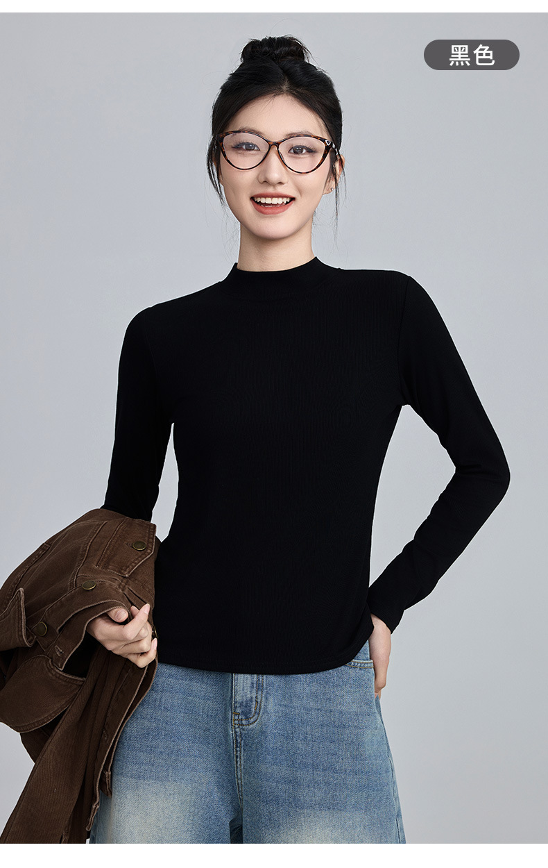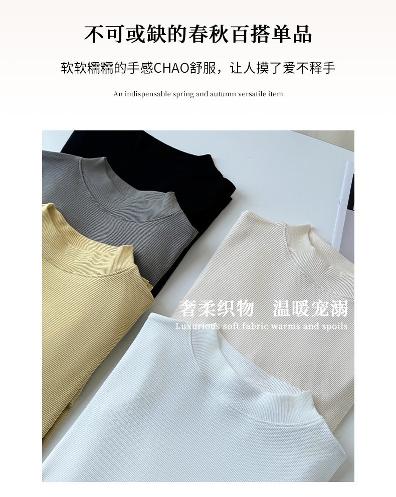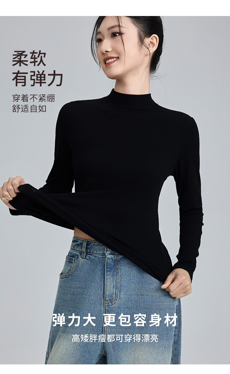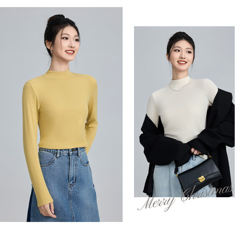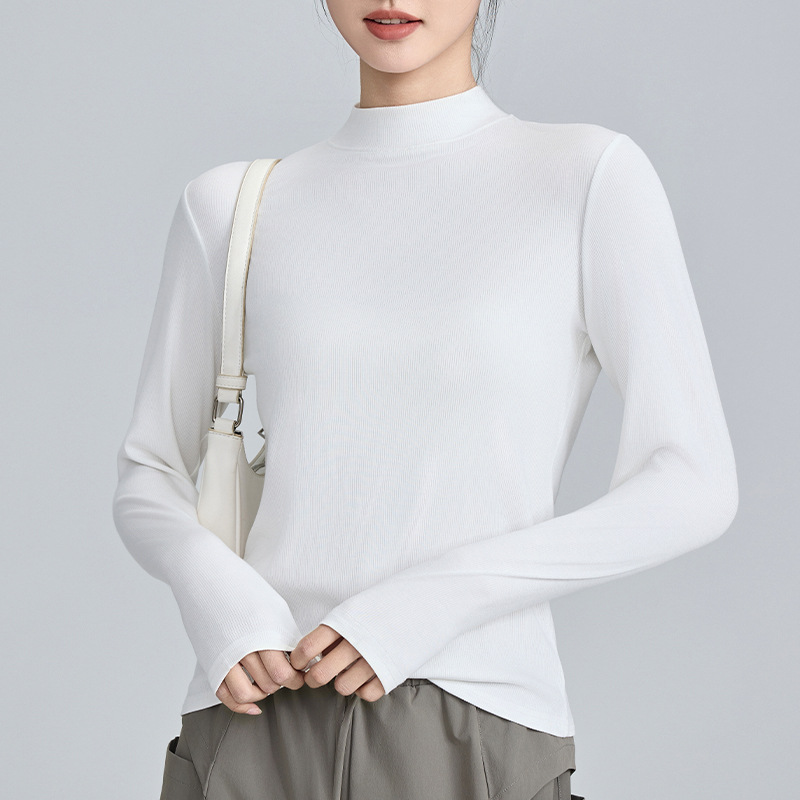 모달 고 탄성 반 높이 칼라베이스 셔츠 여성용 슬림 핏 긴팔 티셔츠 내복 외장 착용 2025 년 봄과 가을 신상스토어 가기