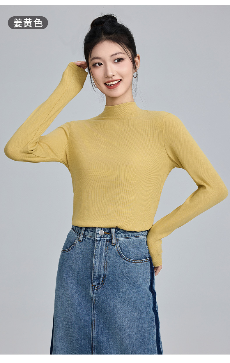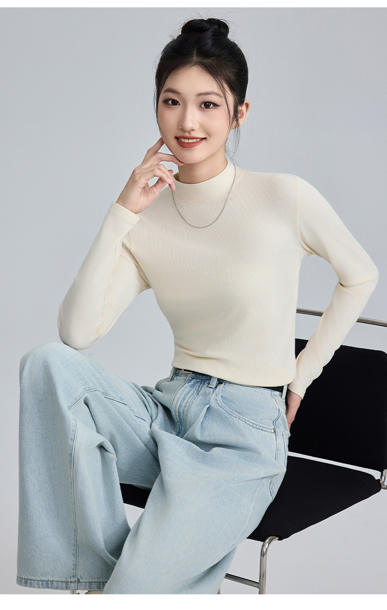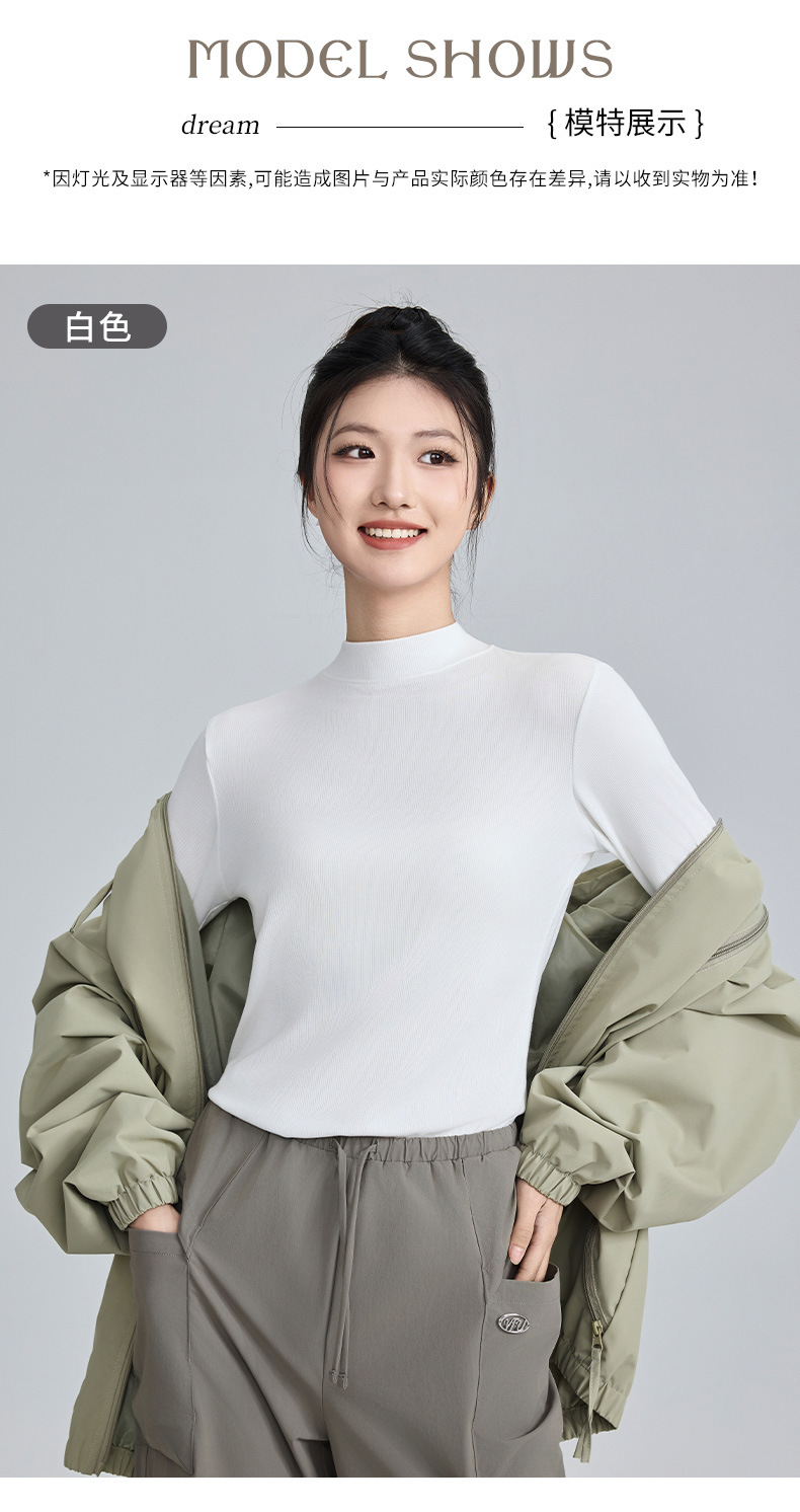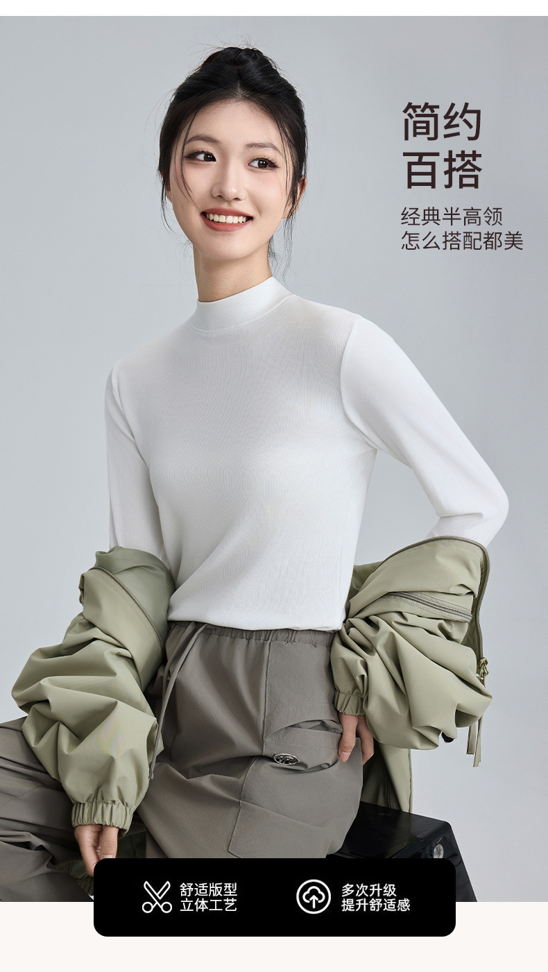 모달 고 탄성 반 높이 칼라베이스 셔츠 여성용 슬림 핏 긴팔 티셔츠 내복 외장 착용 2025 년 봄과 가을 신상스토어 가기