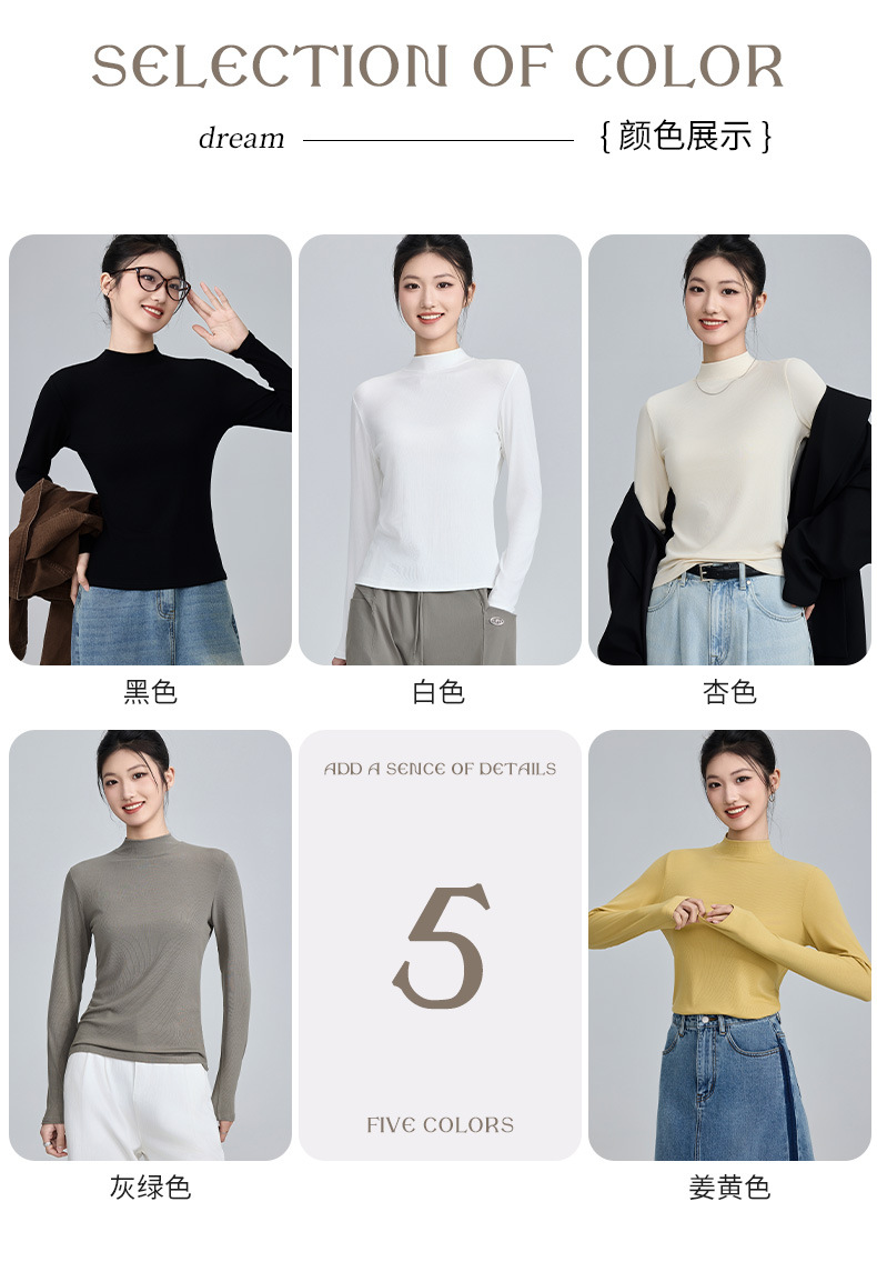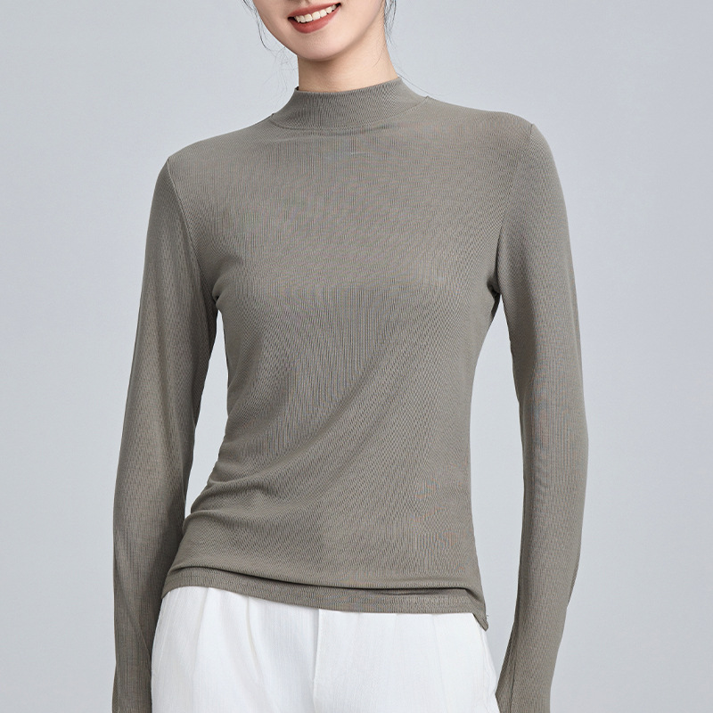 모달 고 탄성 반 높이 칼라베이스 셔츠 여성용 슬림 핏 긴팔 티셔츠 내복 외장 착용 2025 년 봄과 가을 신상