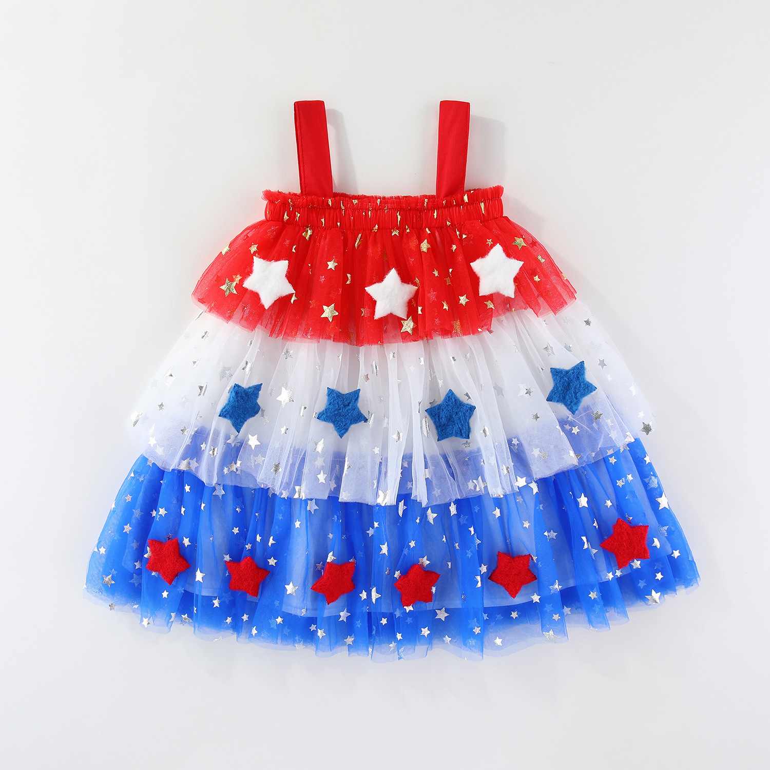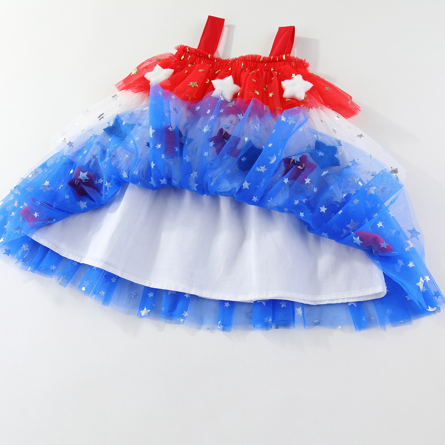 소녀 스타 스팽글 배너 원피스 스트랩리스 스트랩 배너 메쉬 스커트 독립 기념일 휴일 폭발 아마존 핫 세일