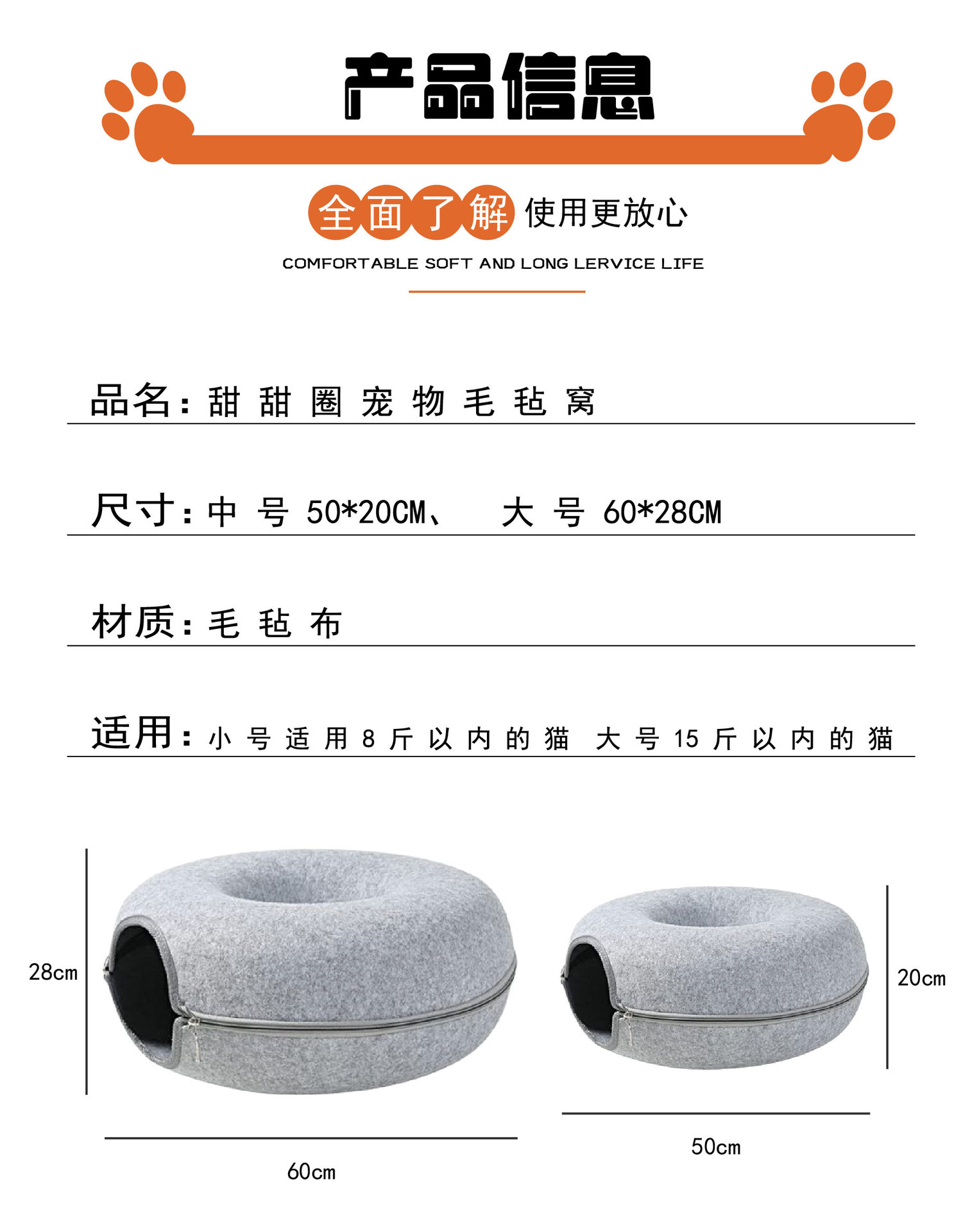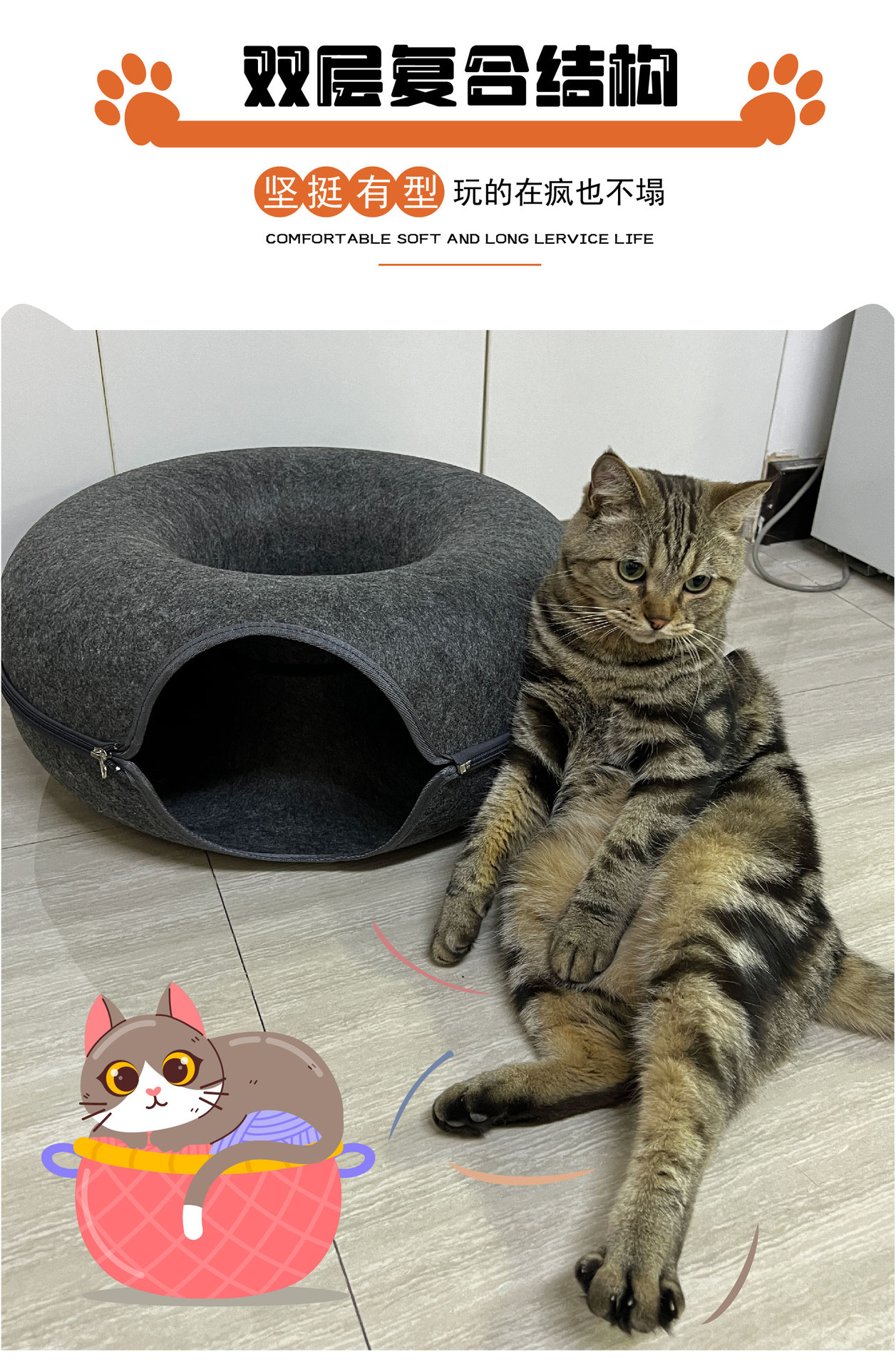 펠트 도넛 터널 애완 동물 길고양이 둥지 여름 사계절 일반 고양이 둥지 제조 업체 도매 국경 대외 무역스토어 가기