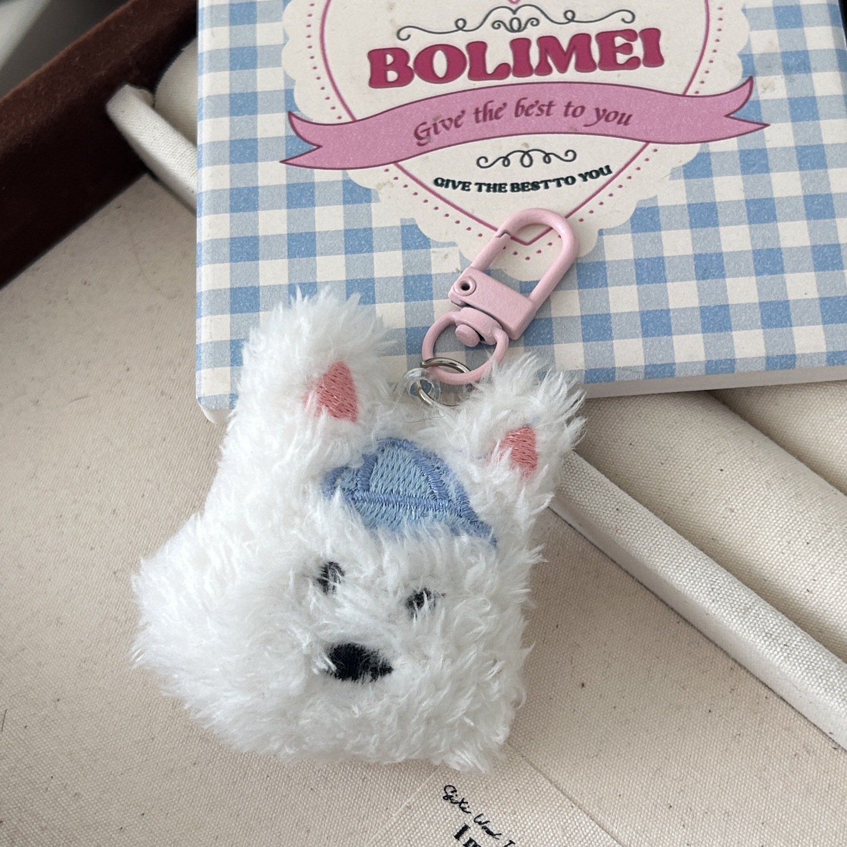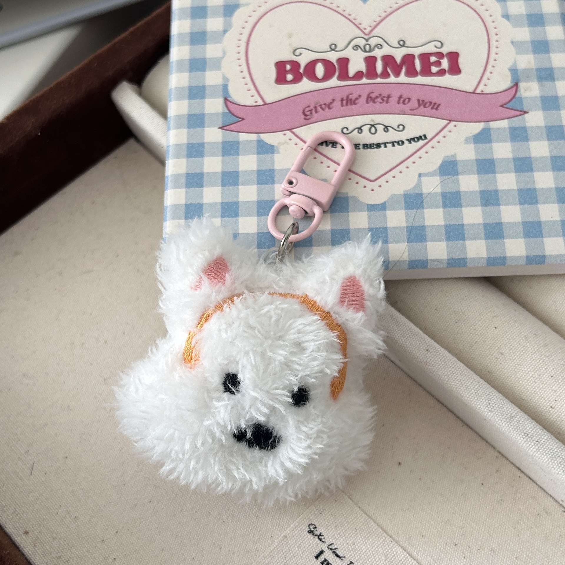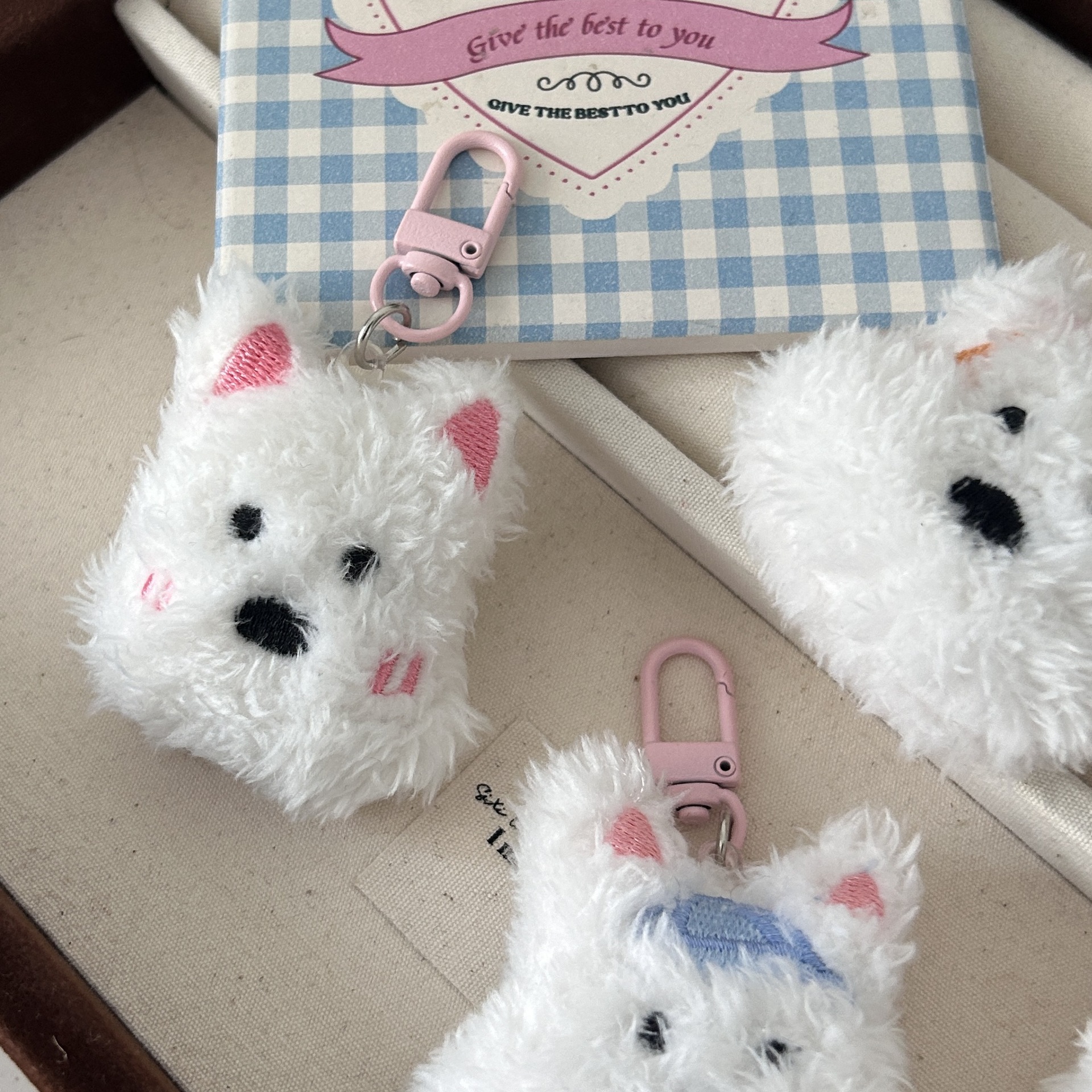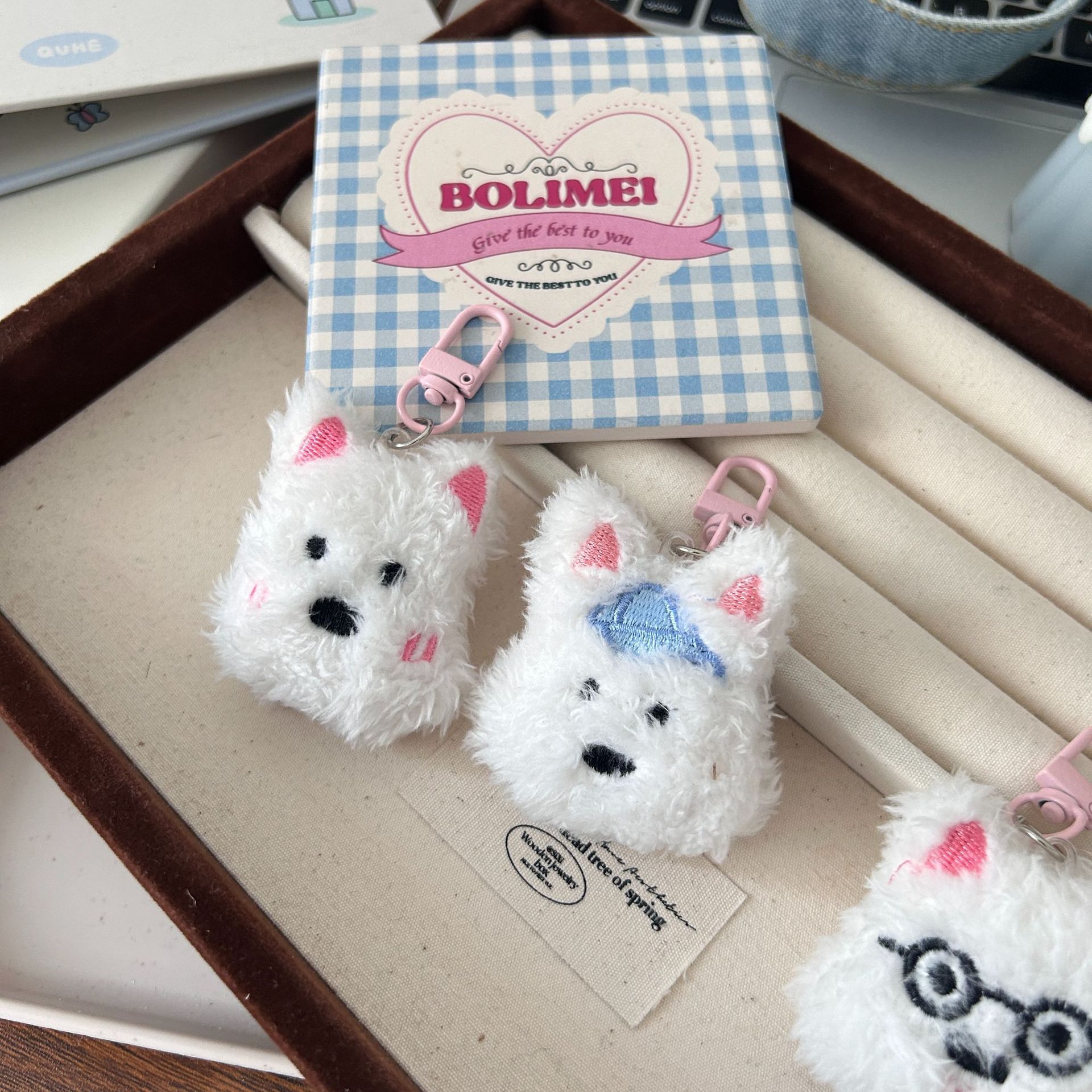 웨스트 하이랜드 봉제 강아지 키 체인 귀여운 부드러운 사랑스러운 소녀 달콤한 펜던트 Ins 학생 여자 친구 선물 액세서리