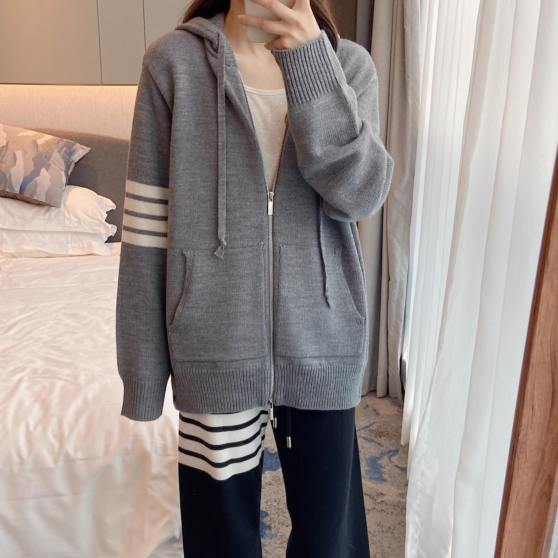 지퍼 같은 스타일 세련된 후디 가을과 겨울 트렌디 코트 백 니트웨어 남성 디자인 여성의 새로운 카디건 세일링