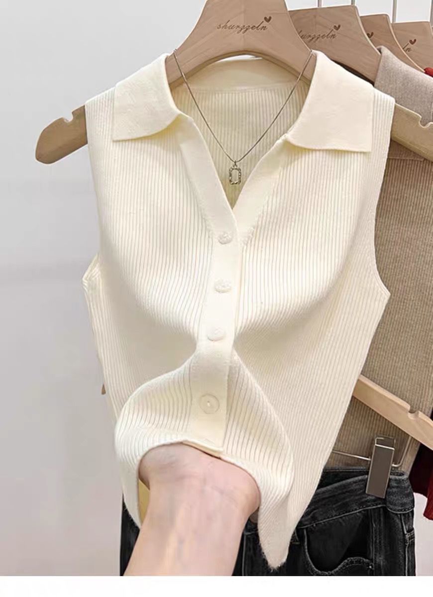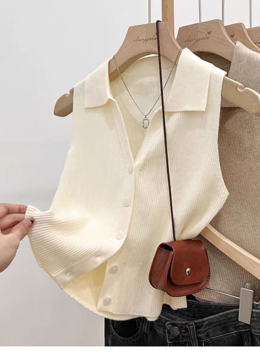 국경 간 공급 - 주문 접수 - 여성용 칼라 조끼 가디건 짧은 바닥 셔츠스토어 가기