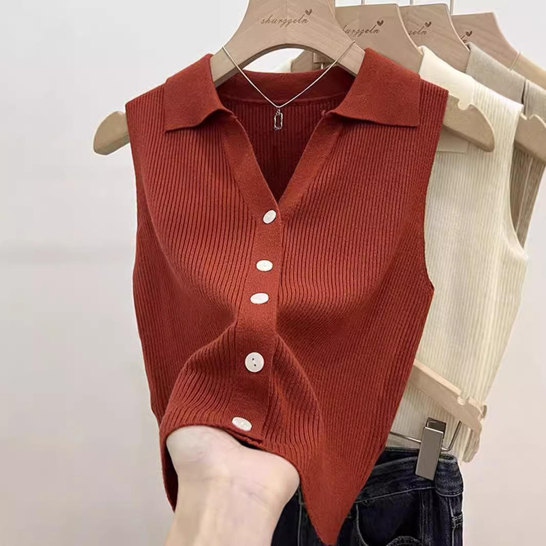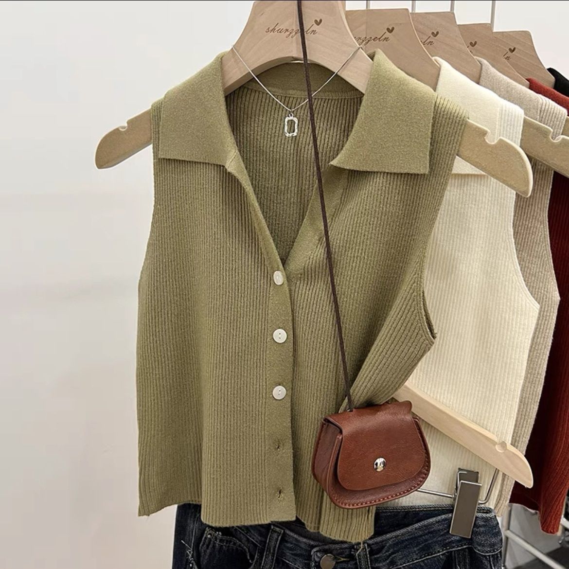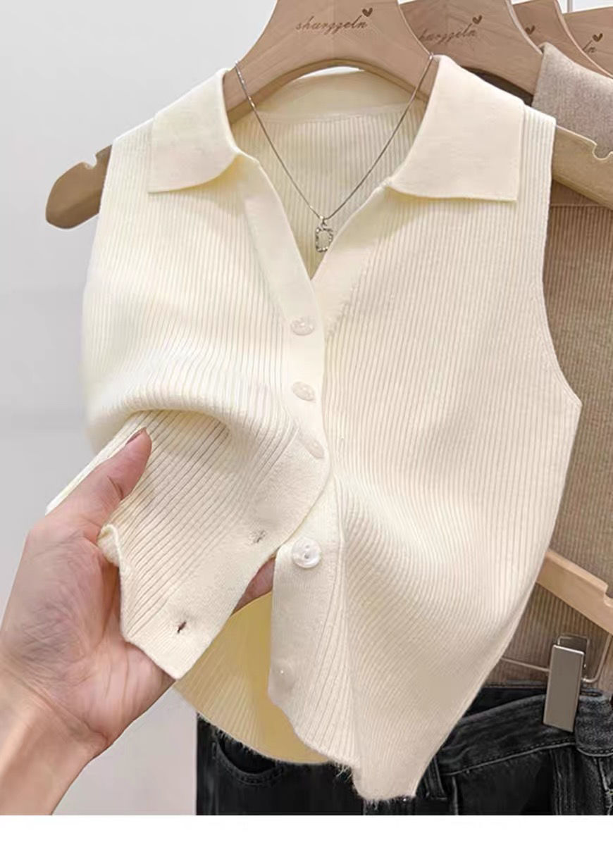 국경 간 공급 - 주문 접수 - 여성용 칼라 조끼 가디건 짧은 바닥 셔츠