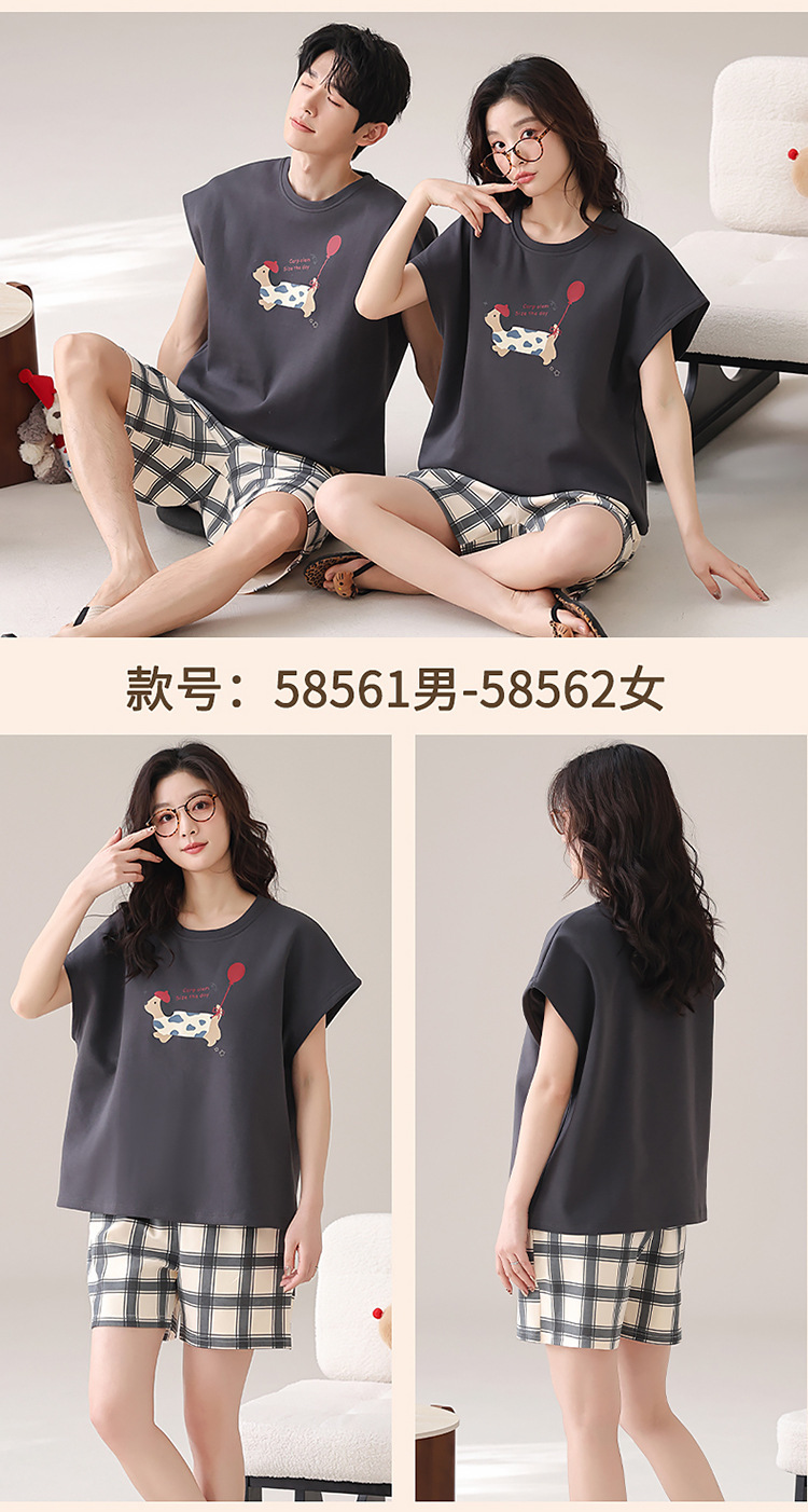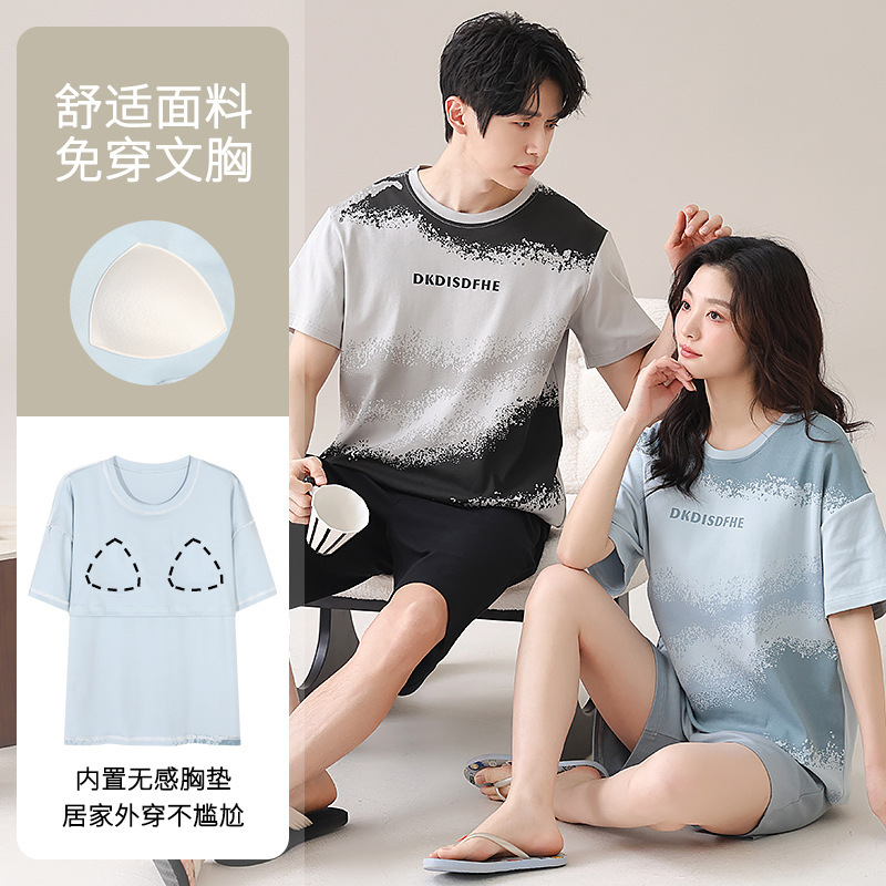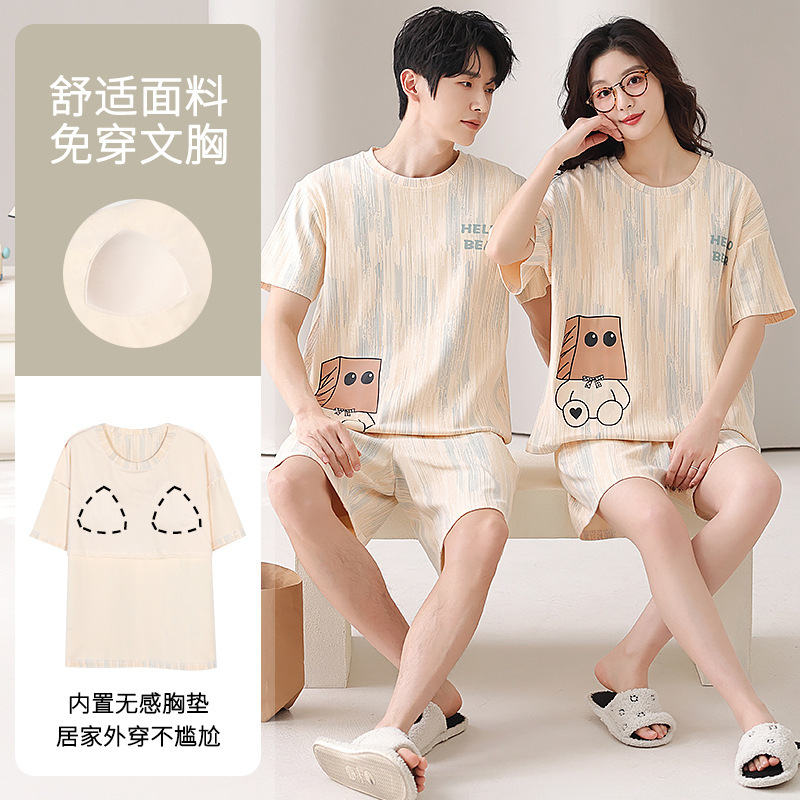 가슴 패드와 커플 잠옷 여성 여름 순면 민소매 조끼 얇은 만화 커플 옷 남성 홈 의류 세트스토어 가기