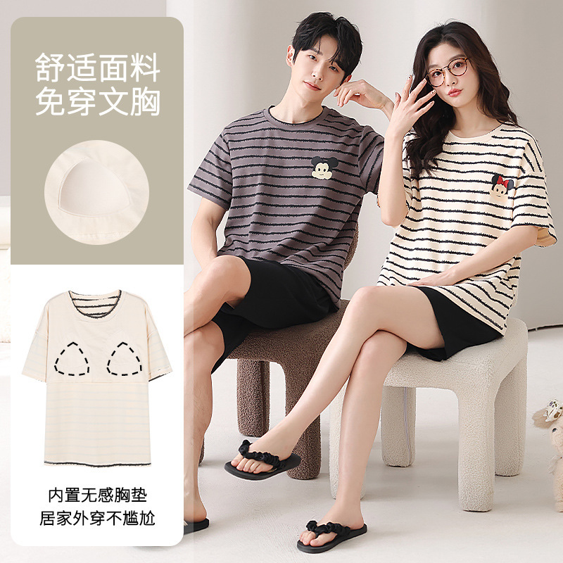 가슴 패드와 커플 잠옷 여성 여름 순면 민소매 조끼 얇은 만화 커플 옷 남성 홈 의류 세트