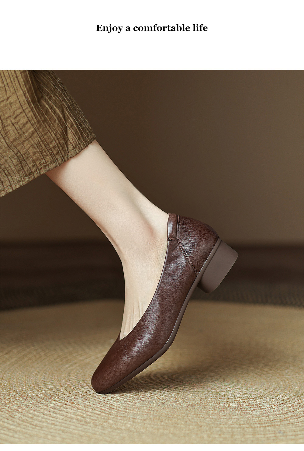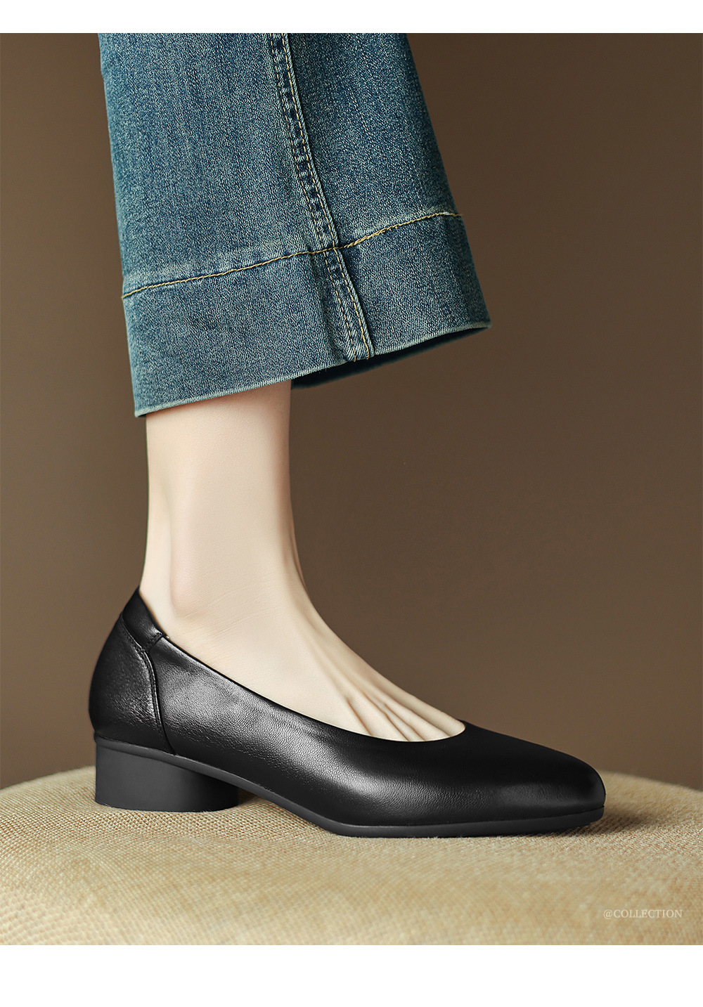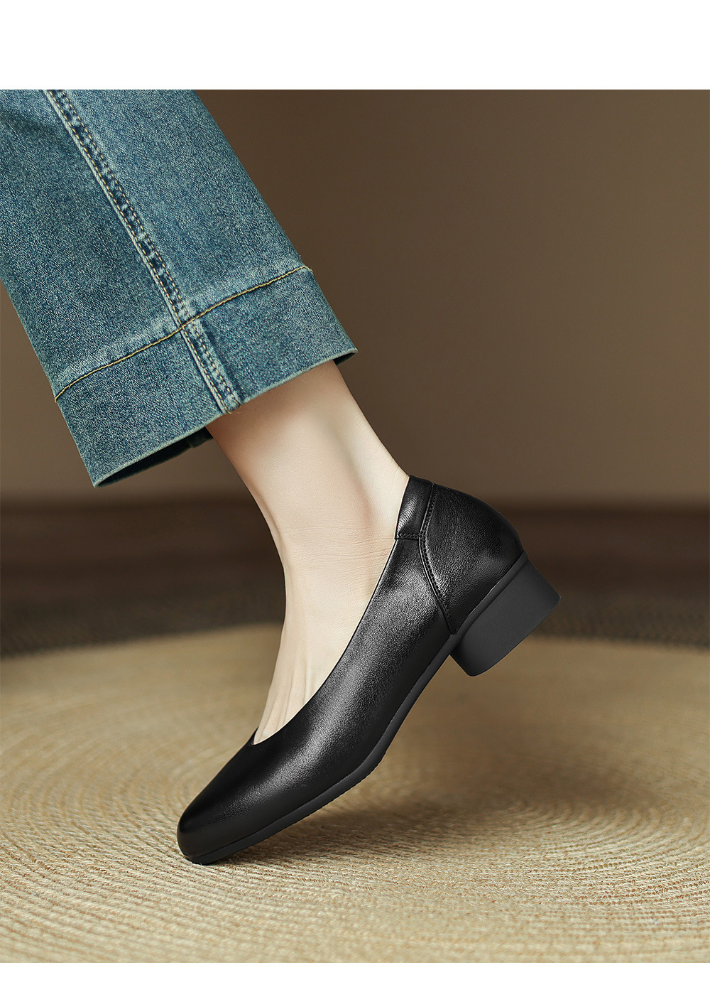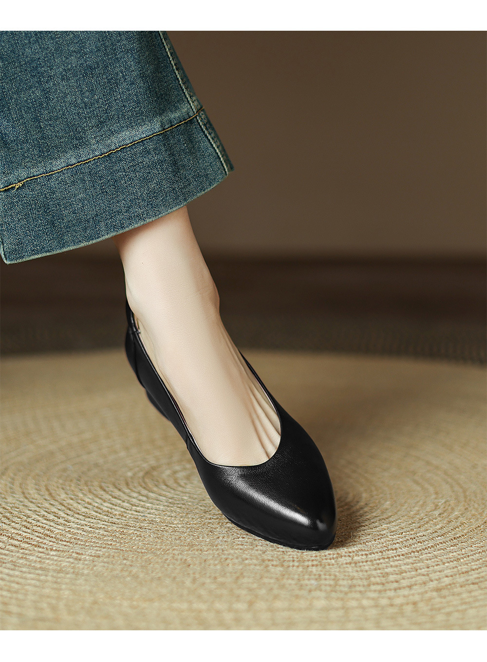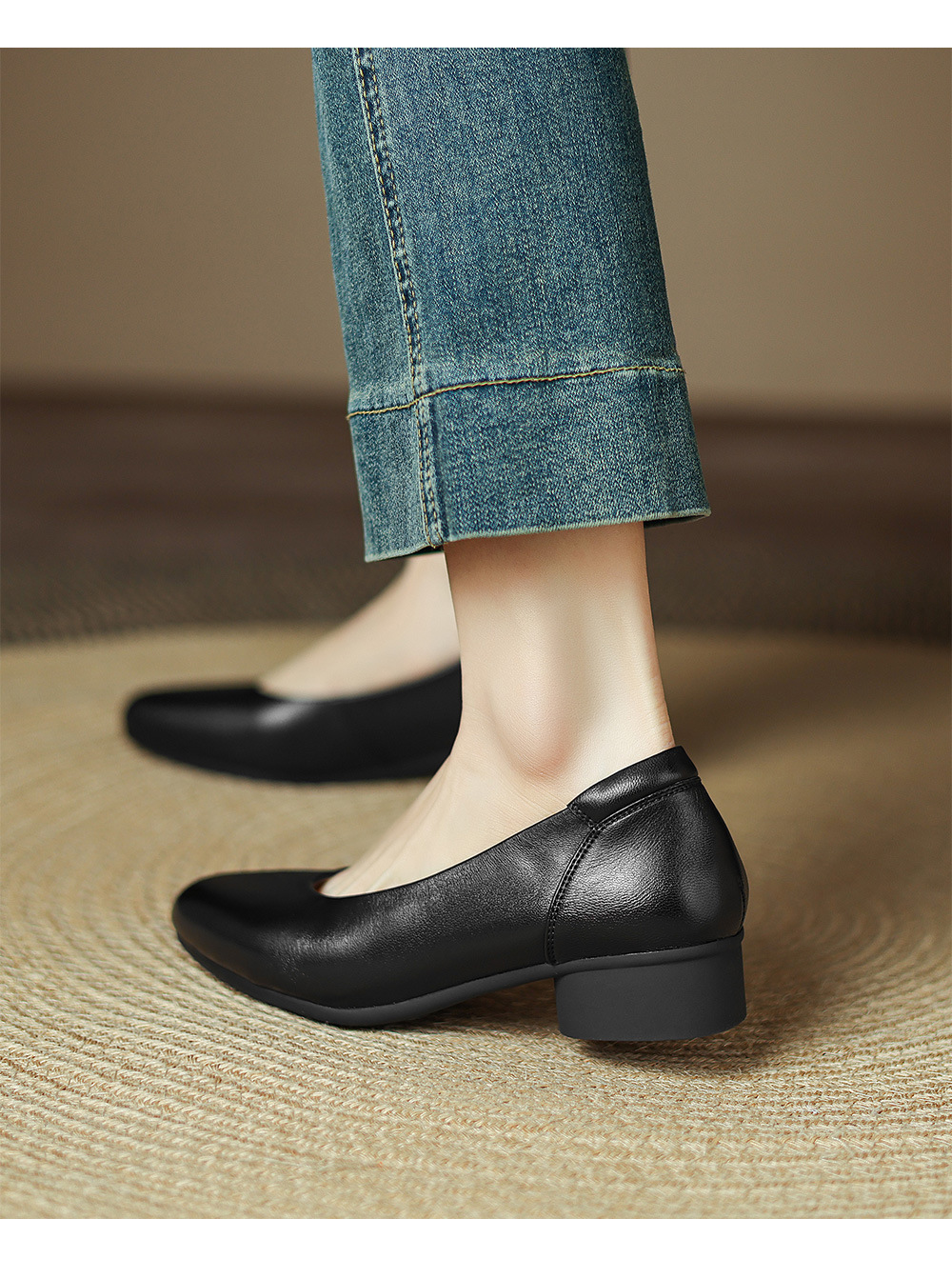 2025 봄 빛 럭셔리 양가죽 밀크 신발 뾰족한 두꺼운 힐 미드 힐 싱글 레이어 신발 레트로 여성용 우아한 올매치 하이힐스토어 가기