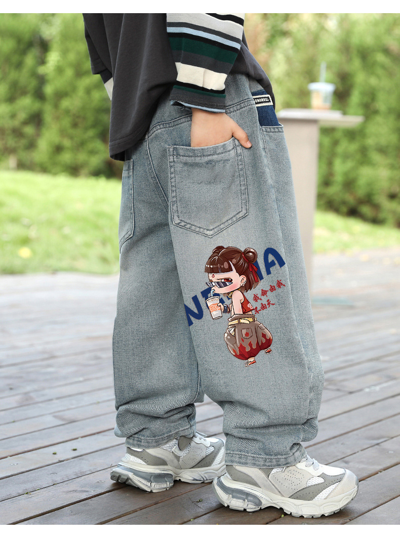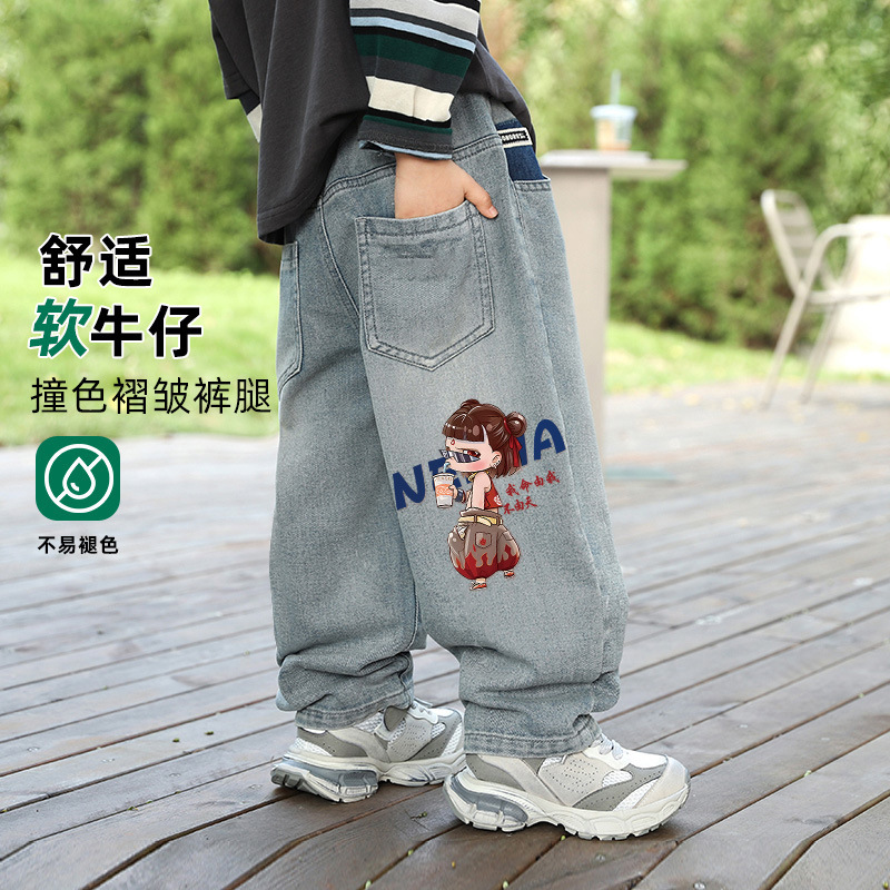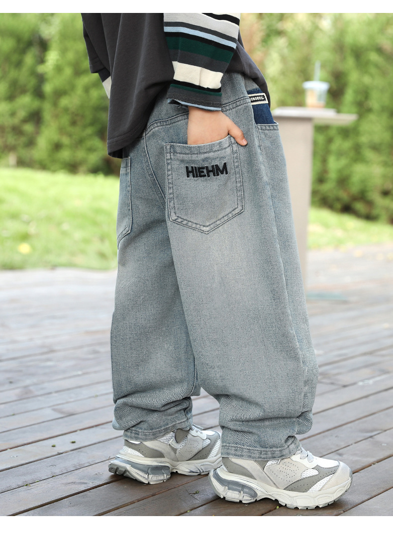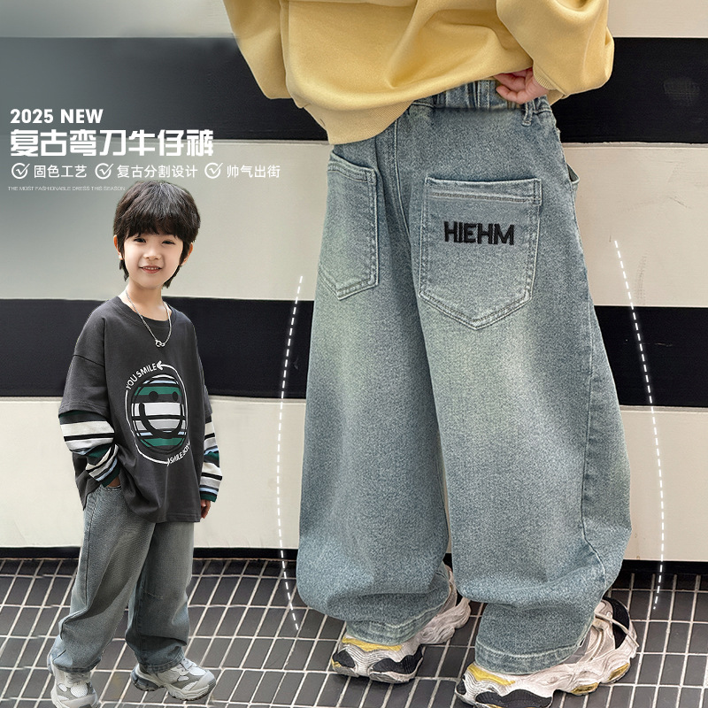 어떤 소년 데님 바지 봄 큰 어린이 스트레이트 바지 느슨한 바지 2025 새로운 바지 만도 바지스토어 가기
