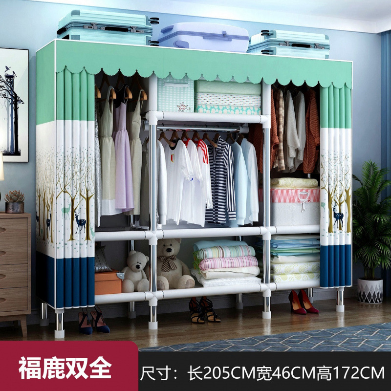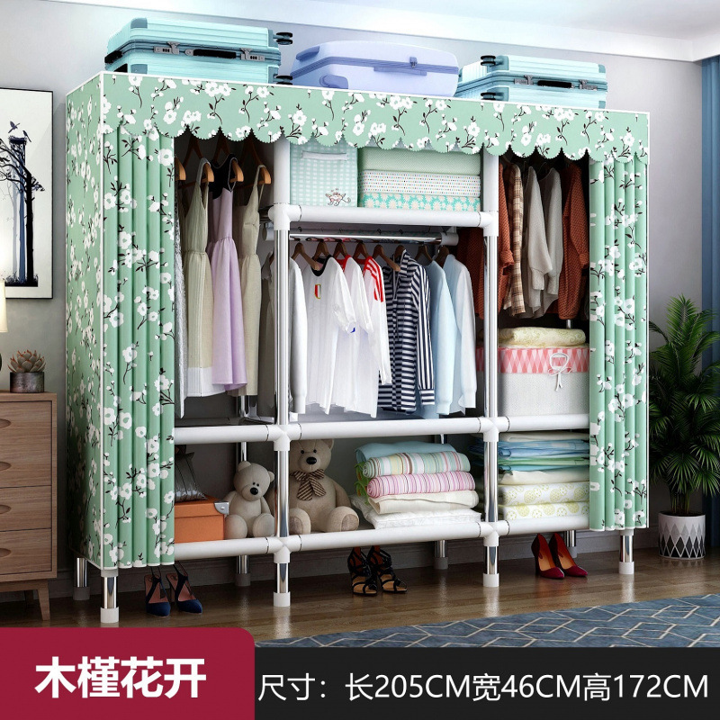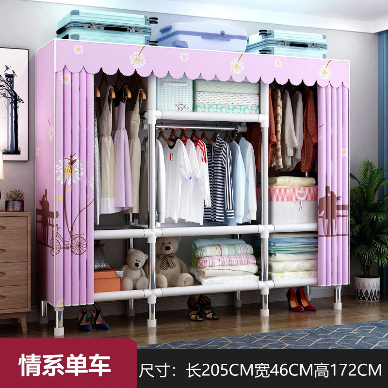 간단한 옷장 천 옷장 두꺼운 강철 파이프 침실 교수형 옷장 임대 방 가구 더블 싱글 옷걸이 성인 옷장스토어 가기