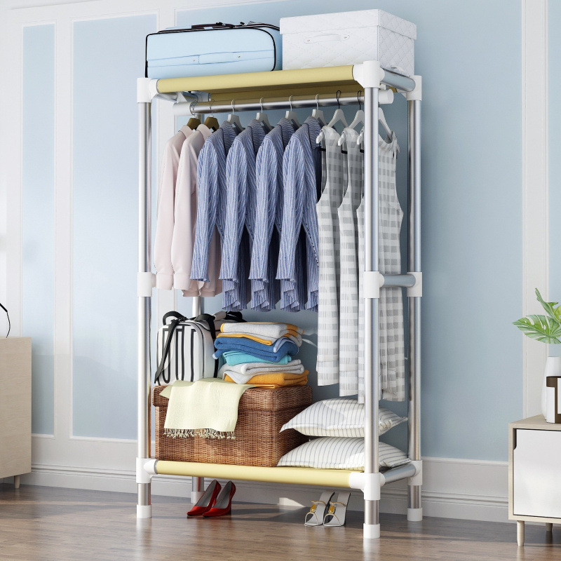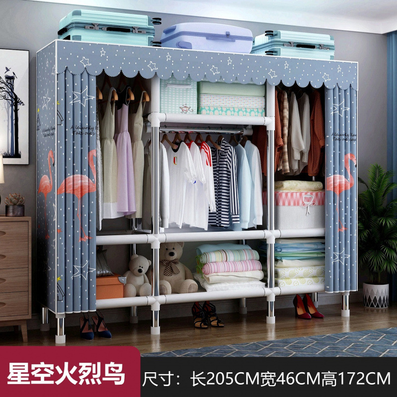 간단한 옷장 천 옷장 두꺼운 강철 파이프 침실 교수형 옷장 임대 방 가구 더블 싱글 옷걸이 성인 옷장