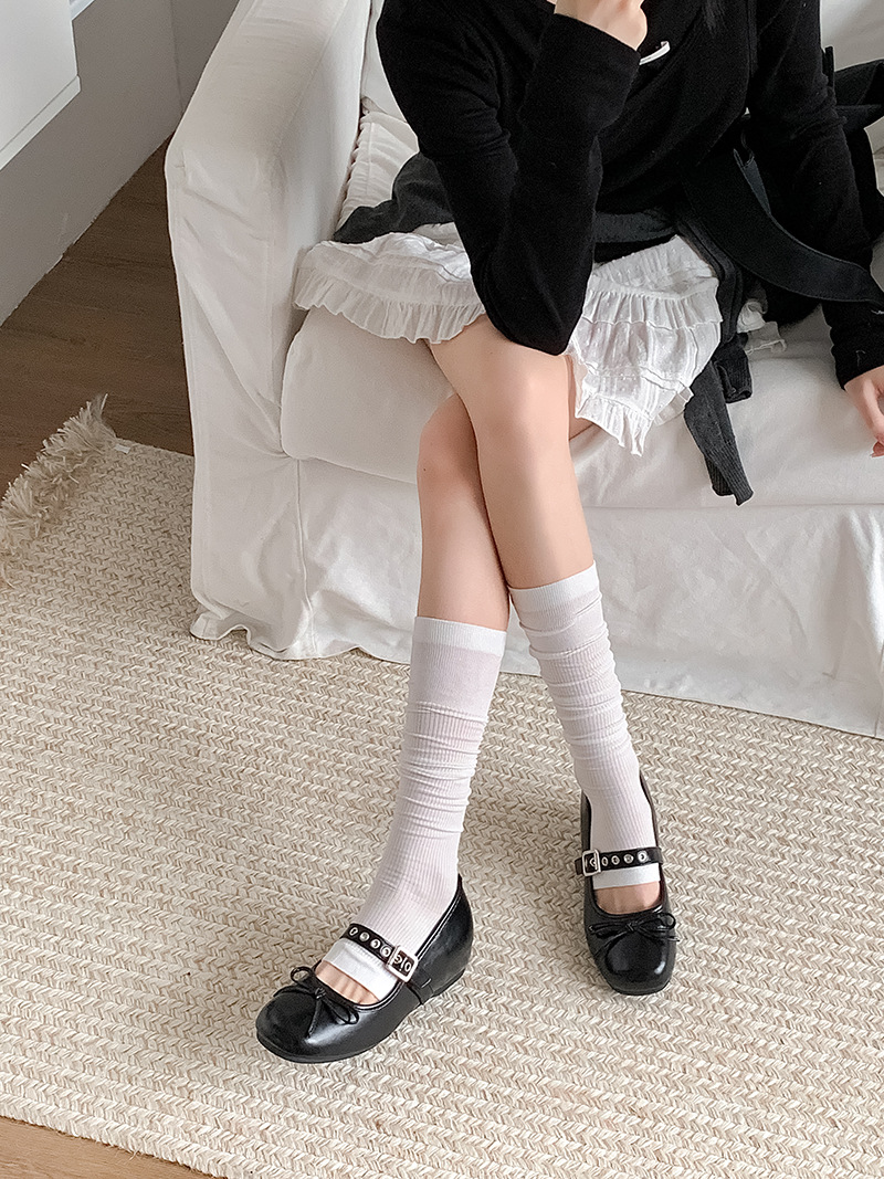 여성용 240핀 멀버리 실크 종아리 양말, 봄 여름 얇은 모달 얇은 세로 줄무늬 양말스토어 가기