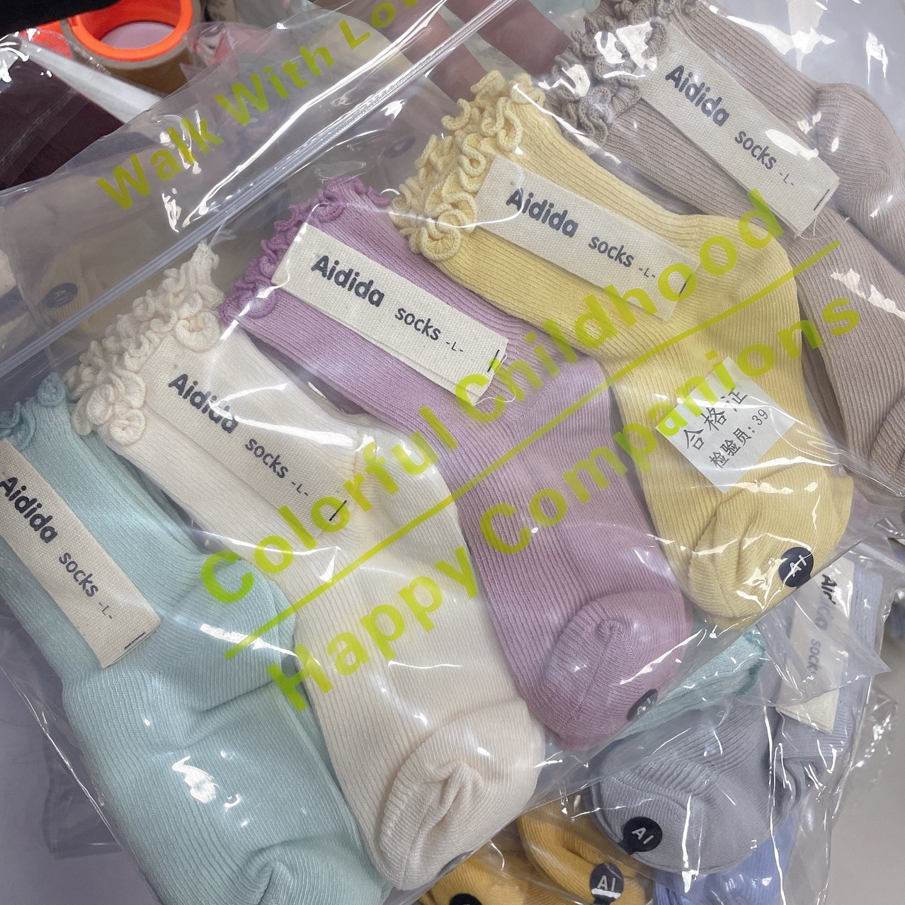 특별 제공 새로운 한국어 버전의 어린이 양말 면화 핑크 재고 만화 자수 더블 바늘 나무 귀 제조 업체 도매 튜브