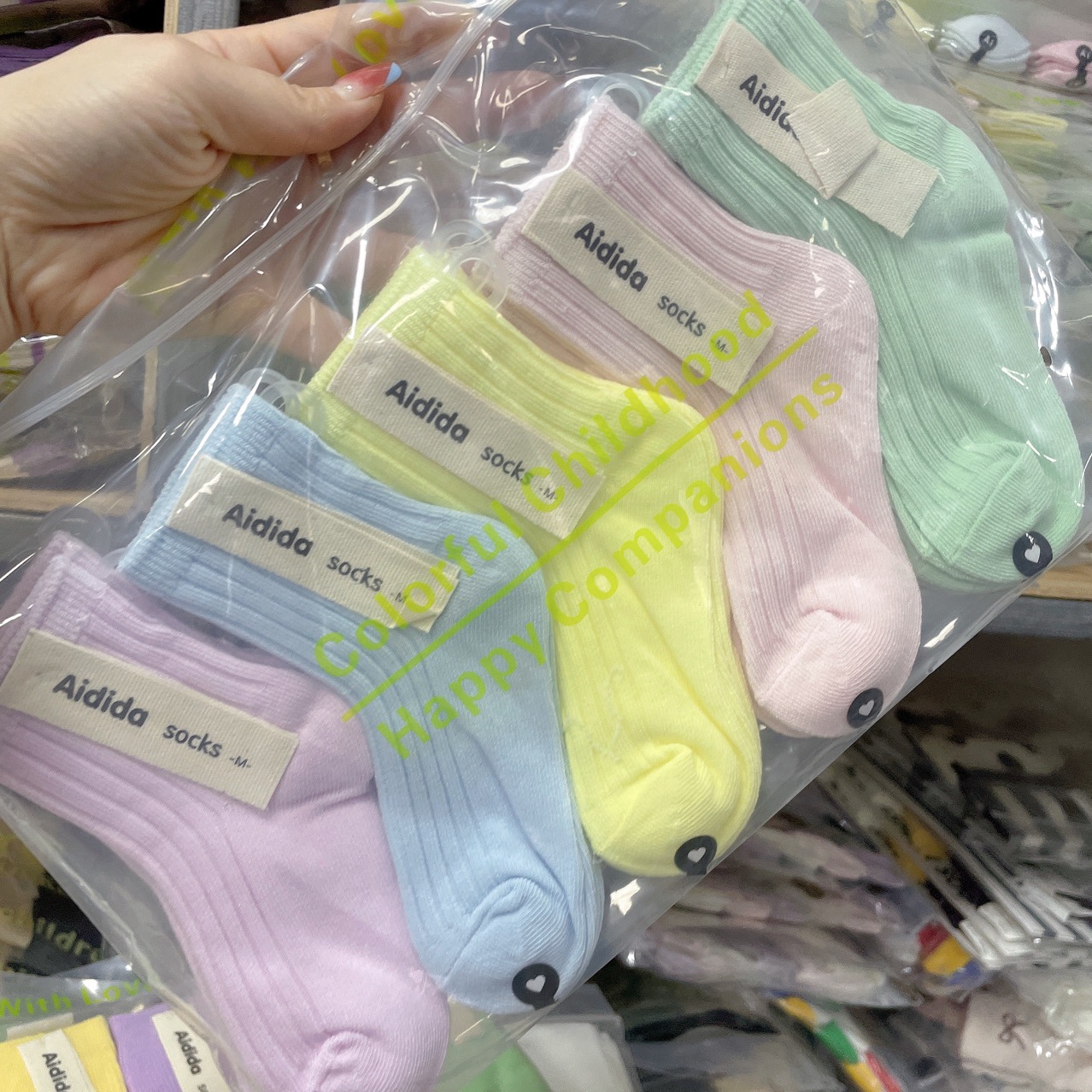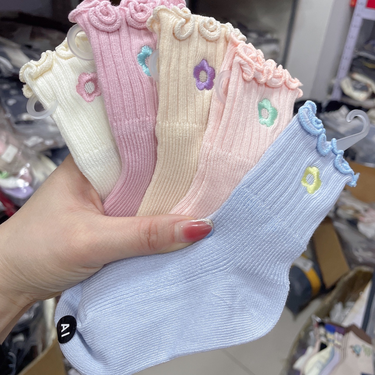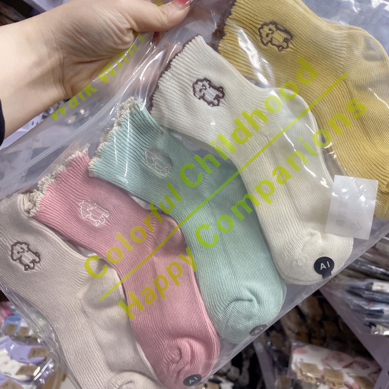 특별 제공 새로운 한국어 버전의 어린이 양말 면화 핑크 재고 만화 자수 더블 바늘 나무 귀 제조 업체 도매 튜브스토어 가기