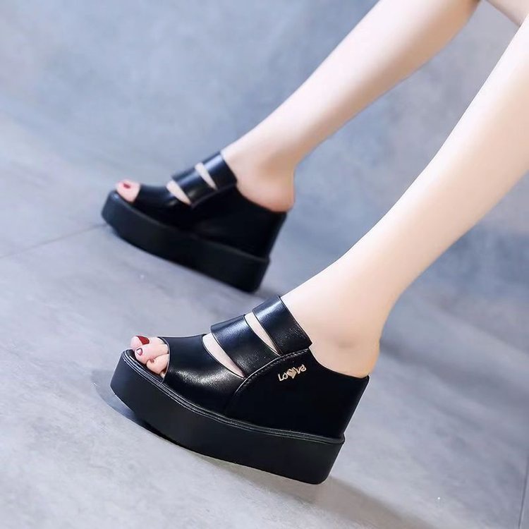 샌들과 슬리퍼 여성용 여름 두꺼운 쐐기 슬리퍼 피쉬-발가락 샌들 11cm 내부 높이 여성 신발 방수 플랫폼 플랫폼 플랫폼 플랫폼 플랫폼 바닥스토어 가기