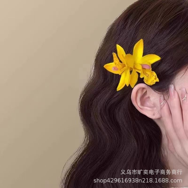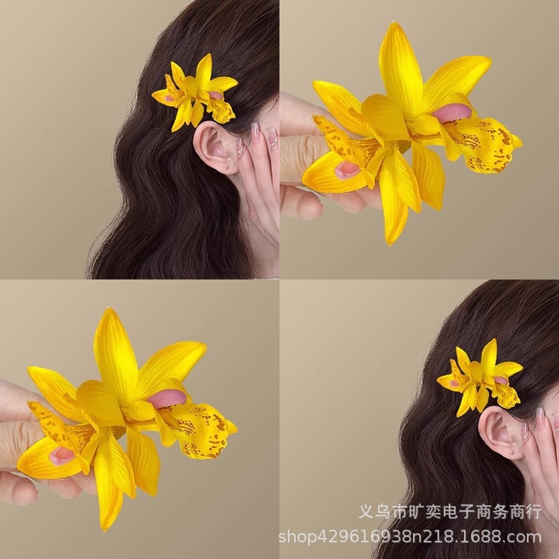 봄 2025 새로운 Phalaenopsis 꽃 헤어 액세서리 헤어 클립 해변 클립 머리 꽃 헤어핀 휴가 용 헤드웨어 인터넷 기념스토어 가기