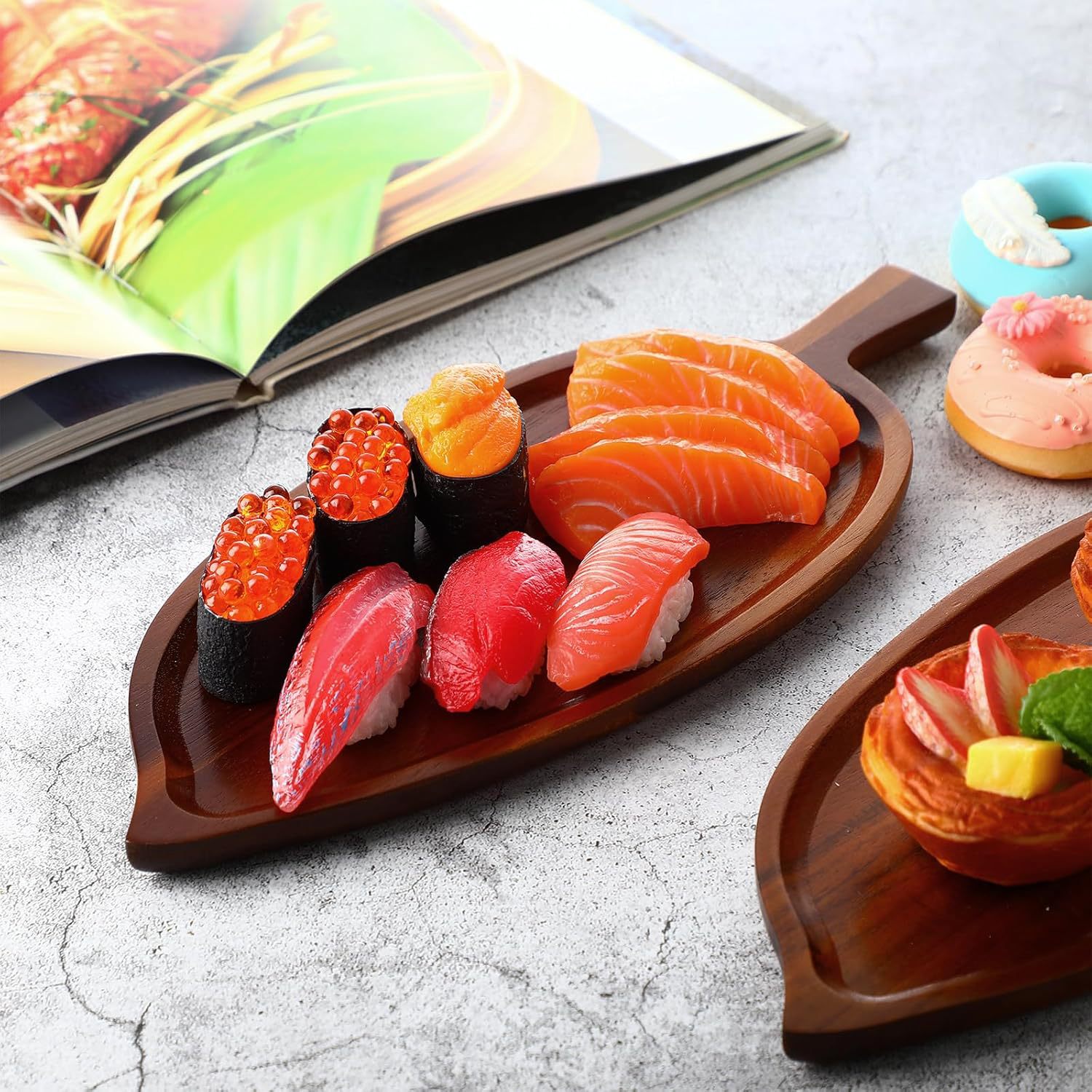 나무 잎 모양 트레이 핸들 잎 모양 트레이 가정용 주방 나무 델리 트레이와 국경 도매스토어 가기