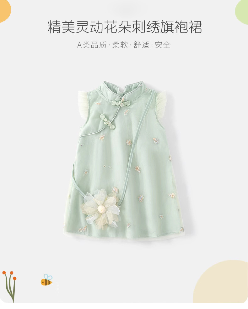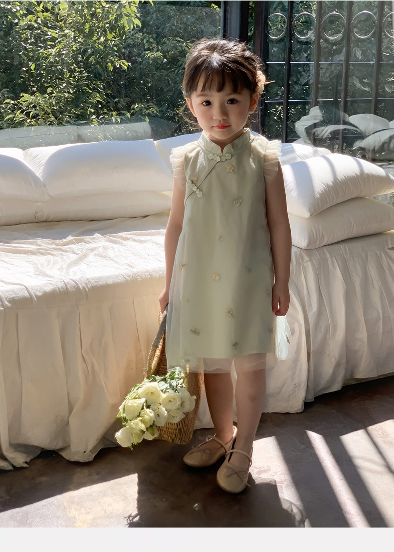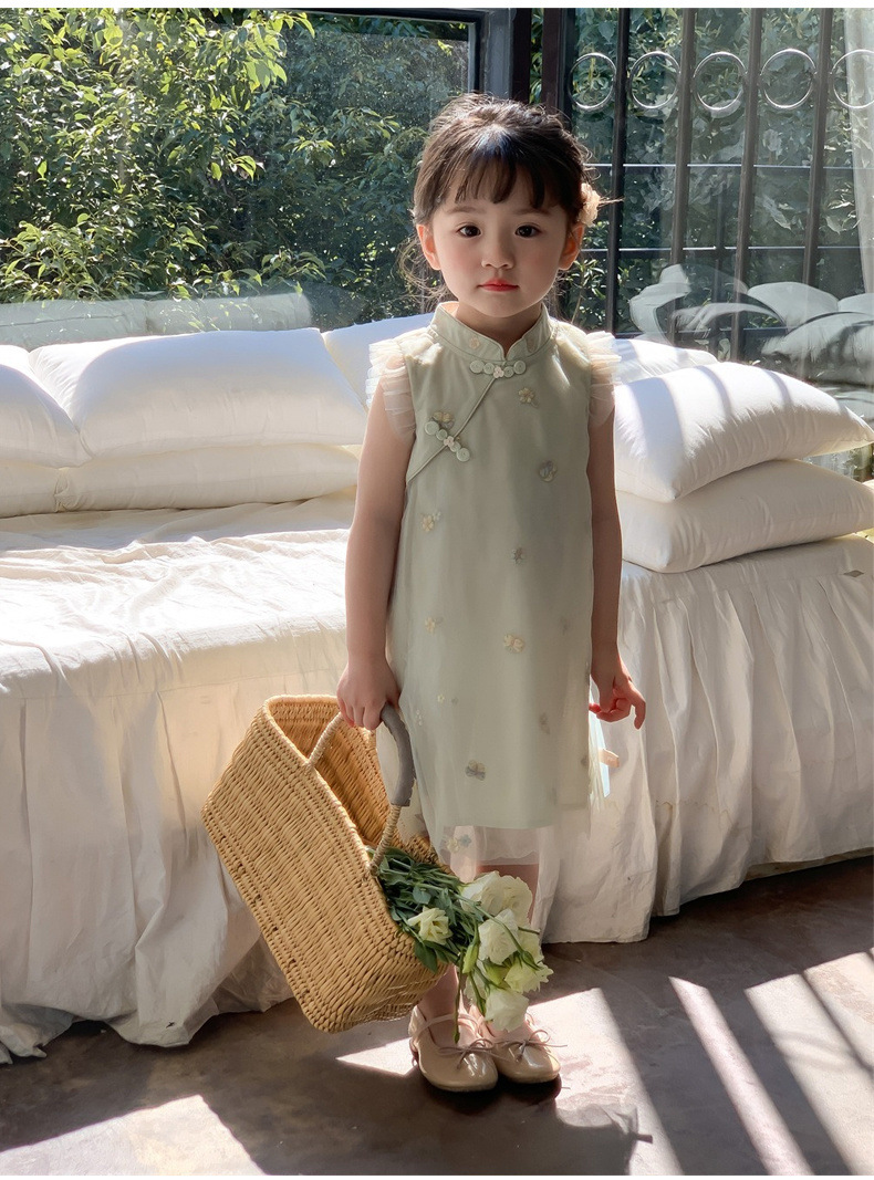 소녀 중국 스타일 원피스 2025 새로운 서양 스타일 여름 한푸 긴 원피스 청삼