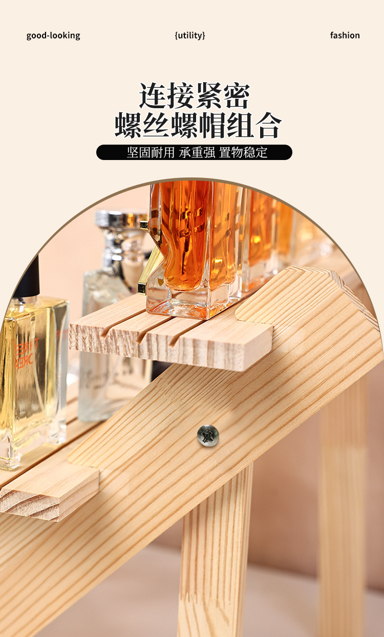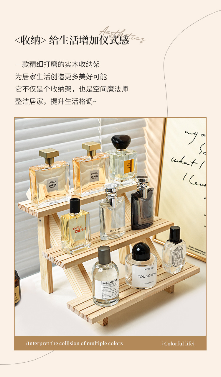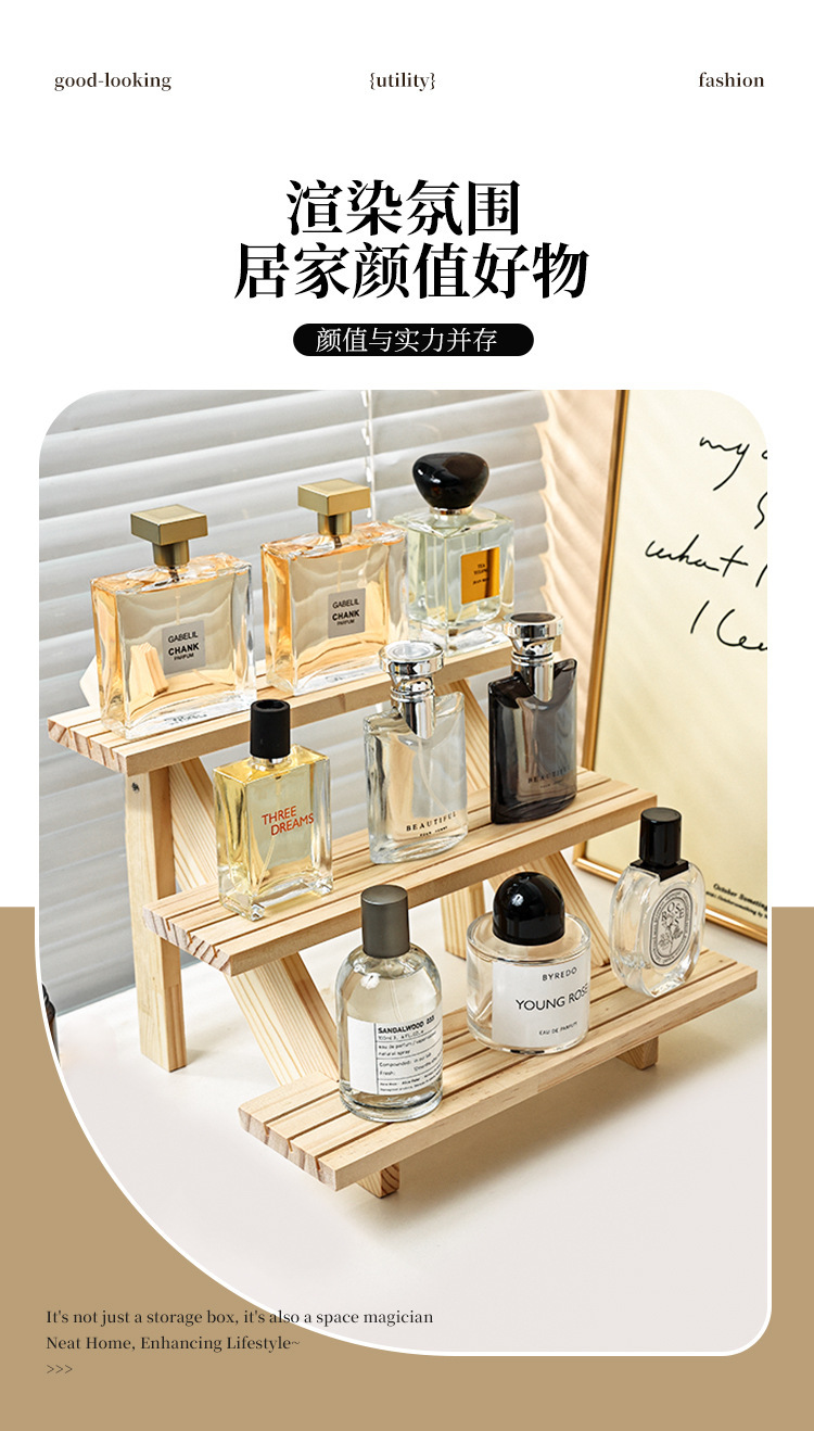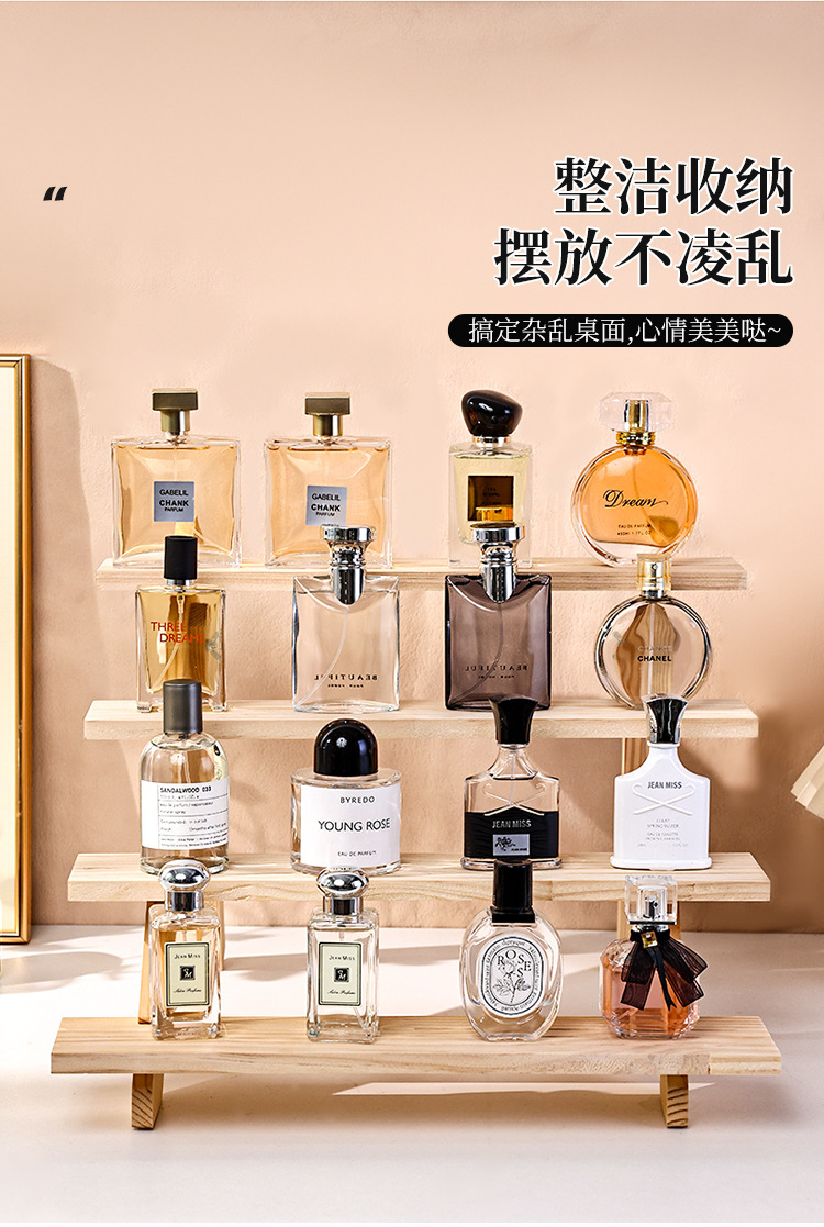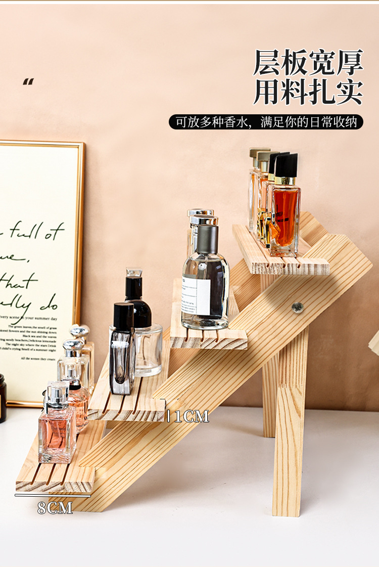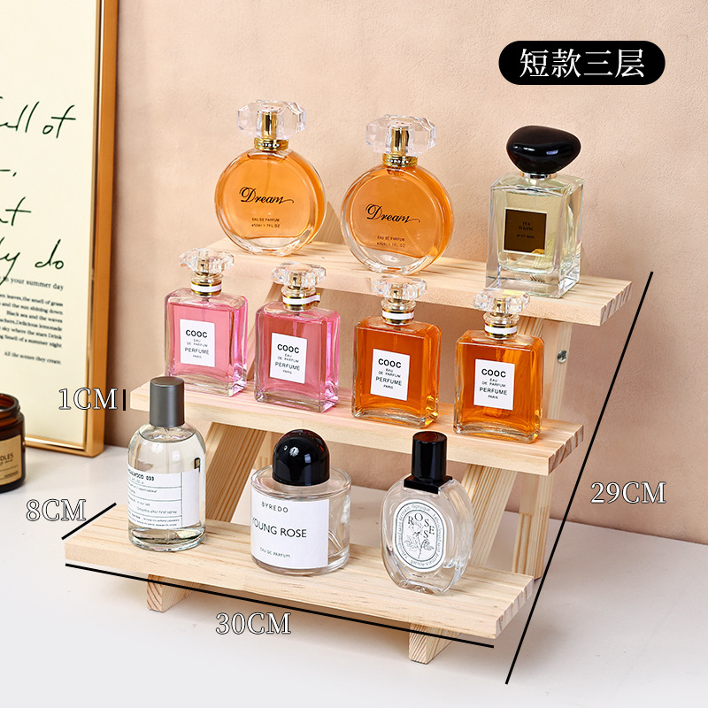 향수 디스플레이 랙 높은 색상 가치 솔리드 우드 스테핑 스토리지 랙 데스크탑 디스플레이 가정용 목재 향수 스토리지 랙