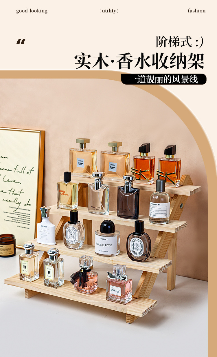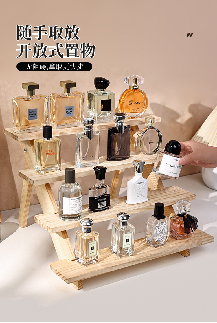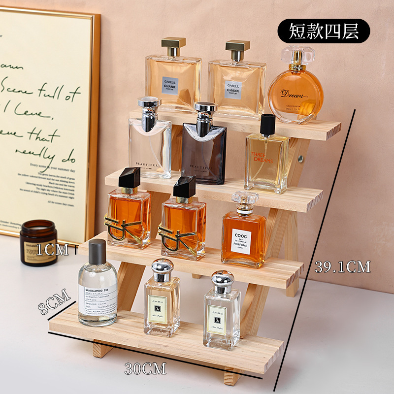 향수 디스플레이 랙 높은 색상 가치 솔리드 우드 스테핑 스토리지 랙 데스크탑 디스플레이 가정용 목재 향수 스토리지 랙스토어 가기
