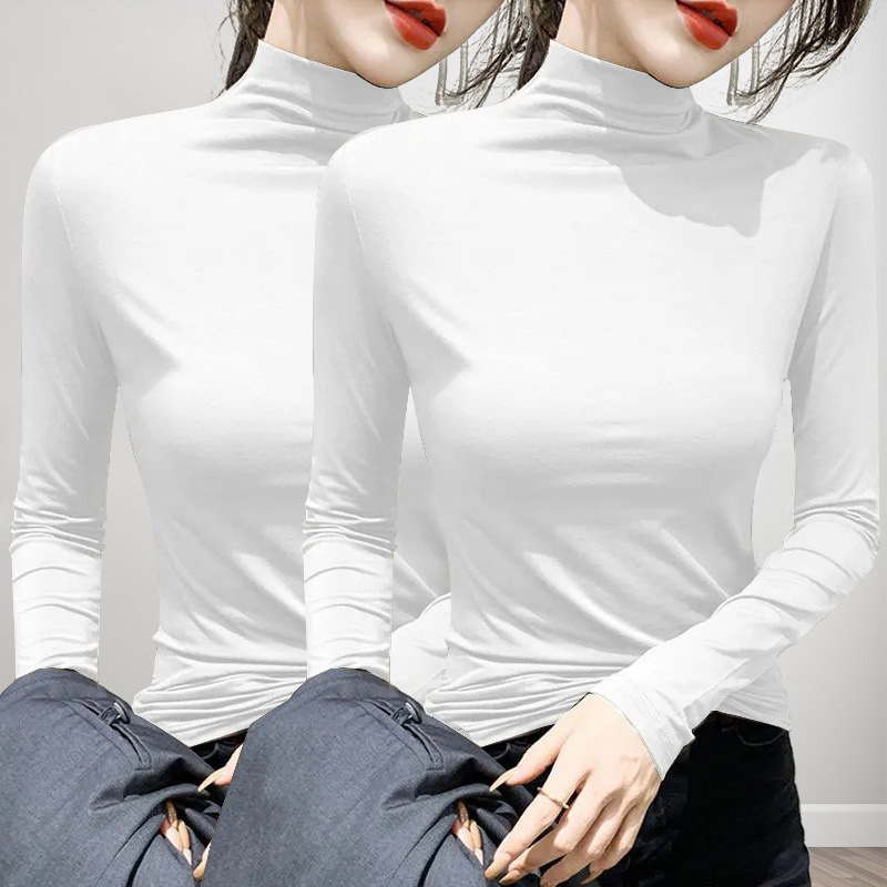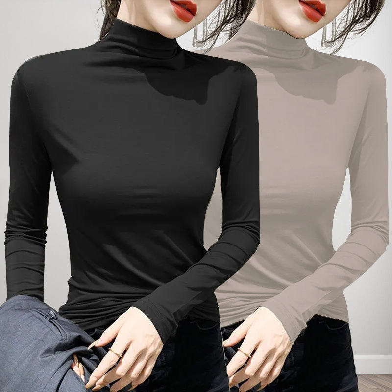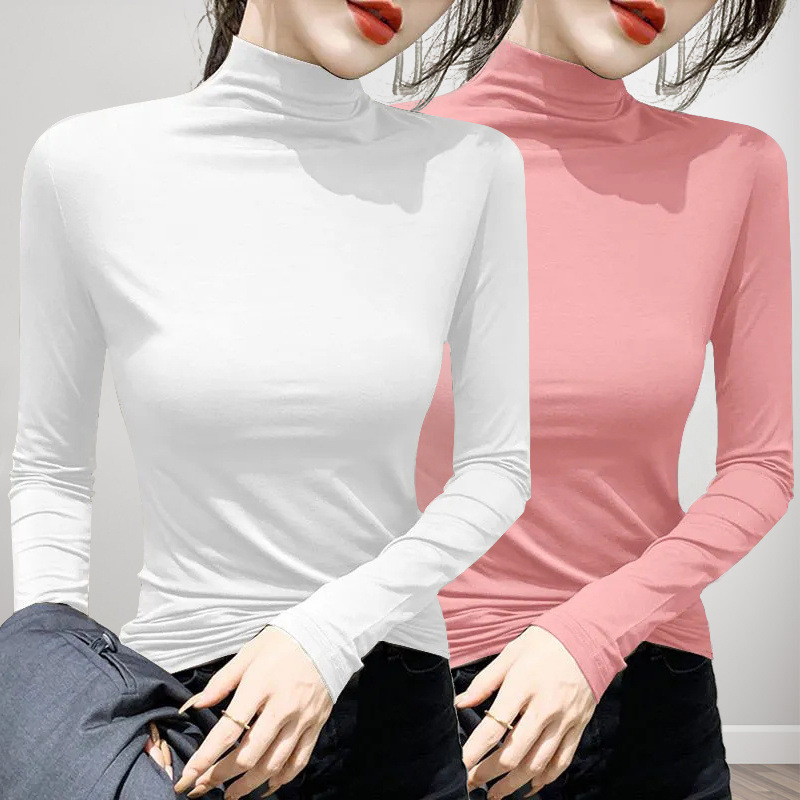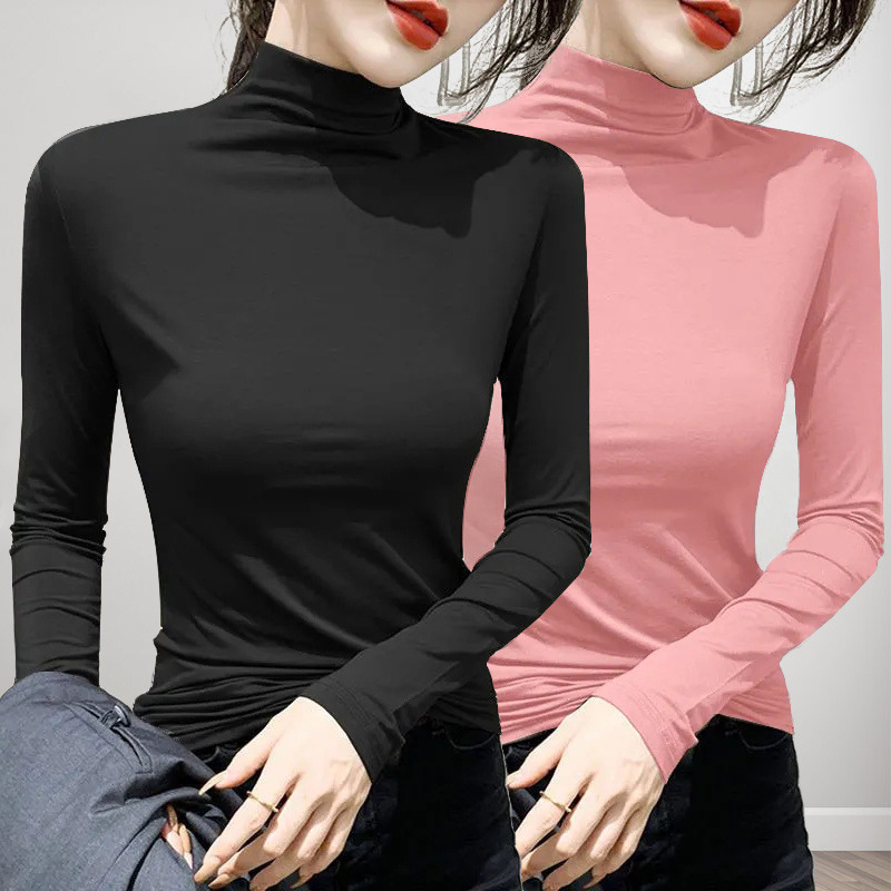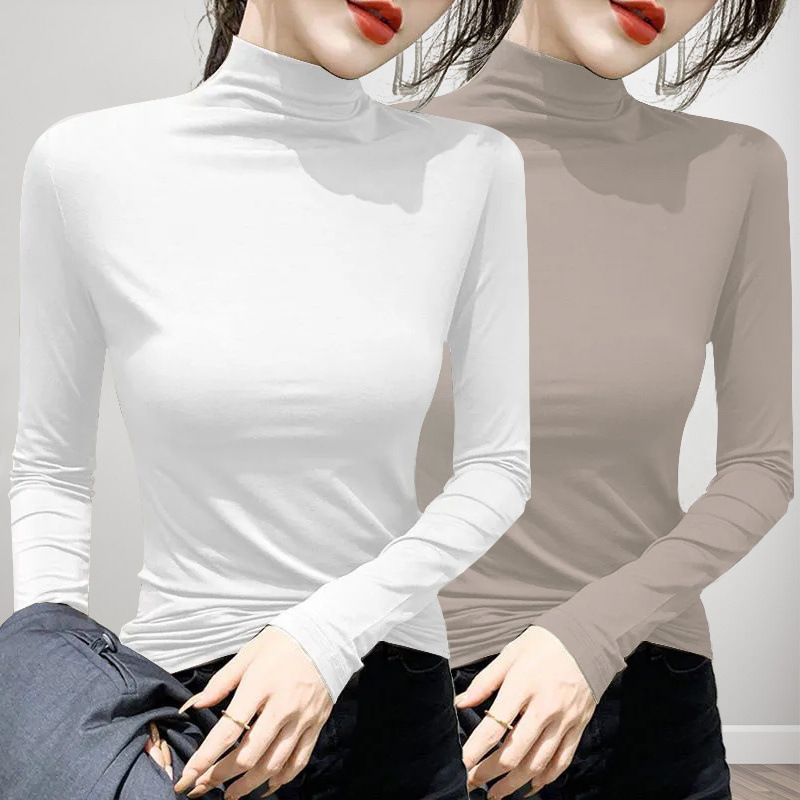 유행과 서양식 간단한 반 높이 칼라베이스 셔츠 여성의 봄과 가을 인테리어 올 매치 가을과 겨울 슬림 얇은 긴팔 티셔츠스토어 가기