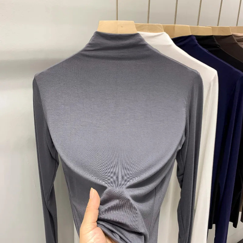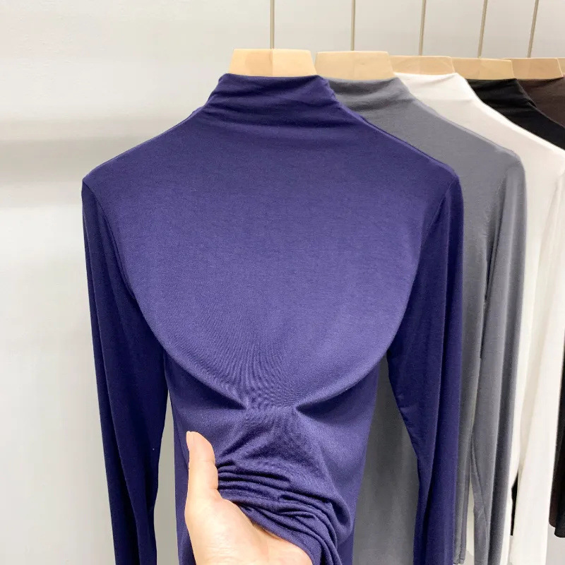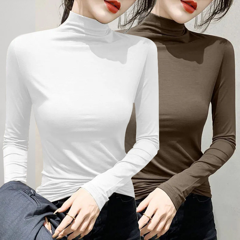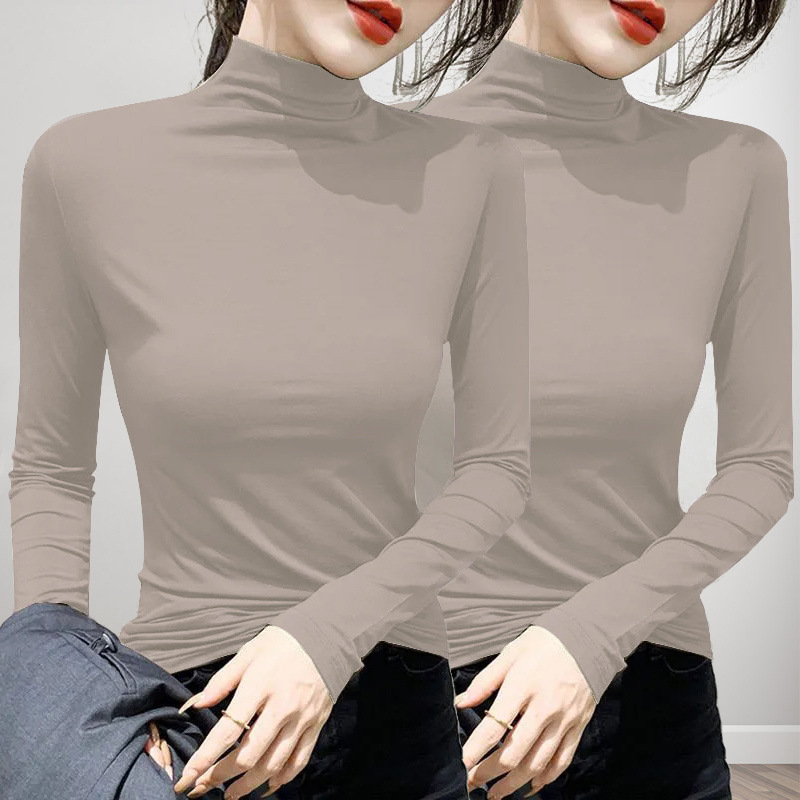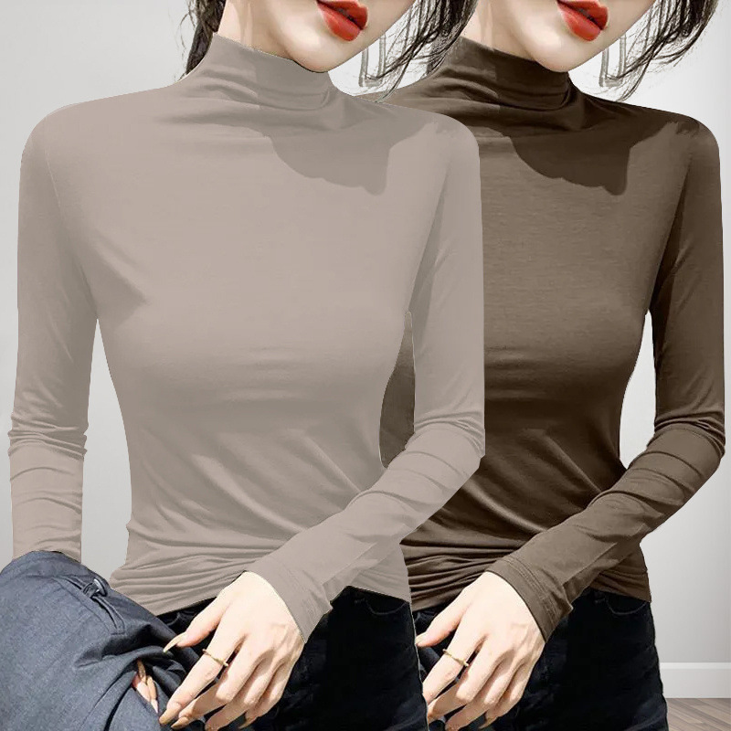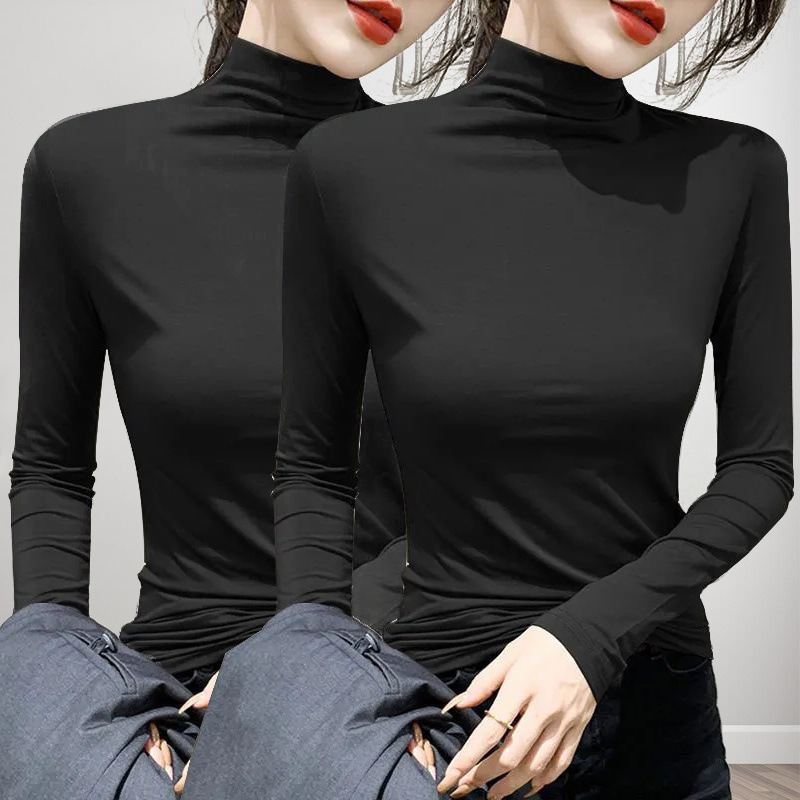 유행과 서양식 간단한 반 높이 칼라베이스 셔츠 여성의 봄과 가을 인테리어 올 매치 가을과 겨울 슬림 얇은 긴팔 티셔츠스토어 가기