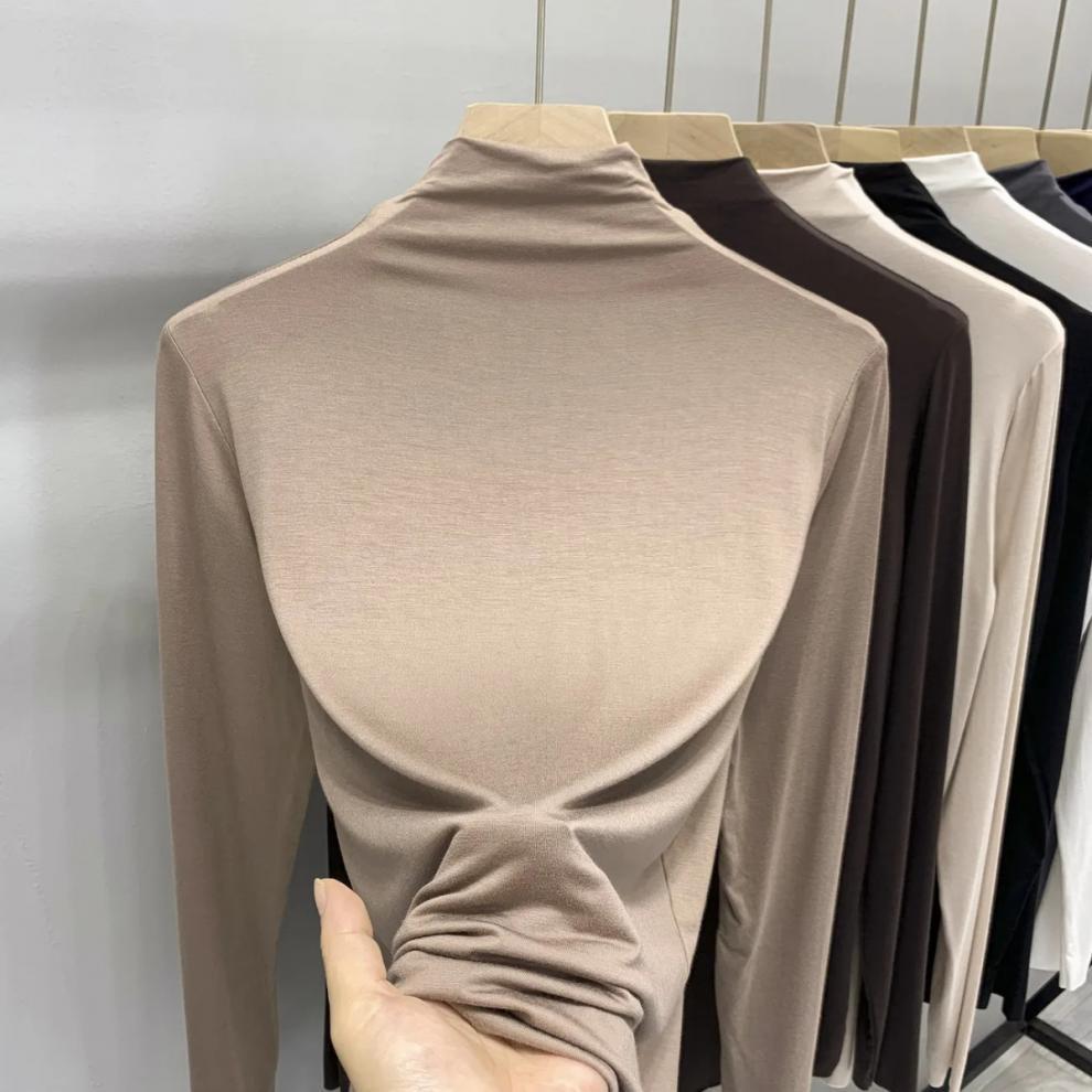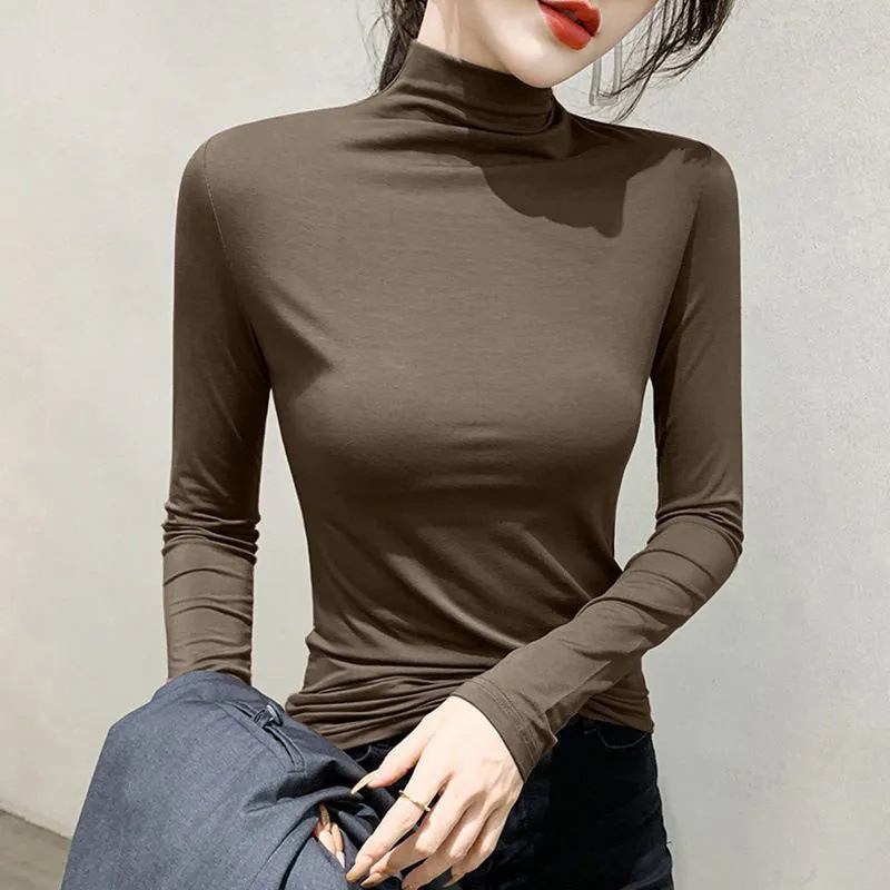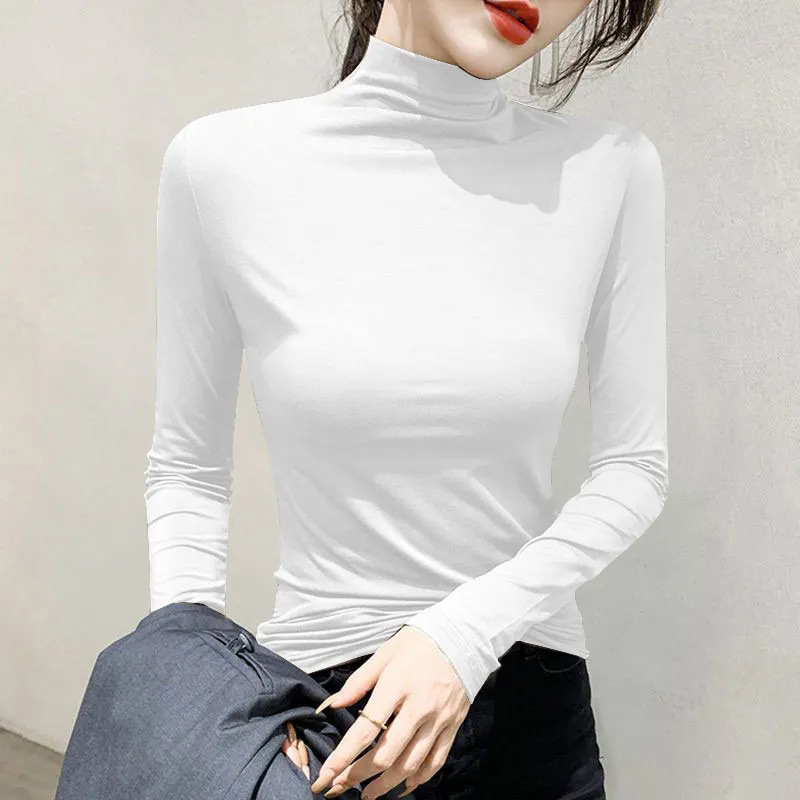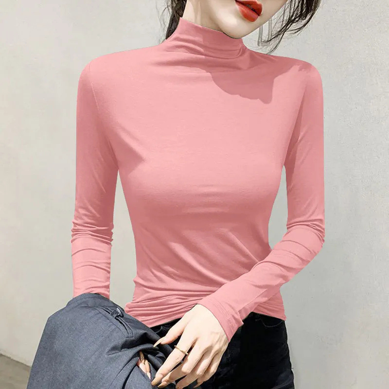 유행과 서양식 간단한 반 높이 칼라베이스 셔츠 여성의 봄과 가을 인테리어 올 매치 가을과 겨울 슬림 얇은 긴팔 티셔츠