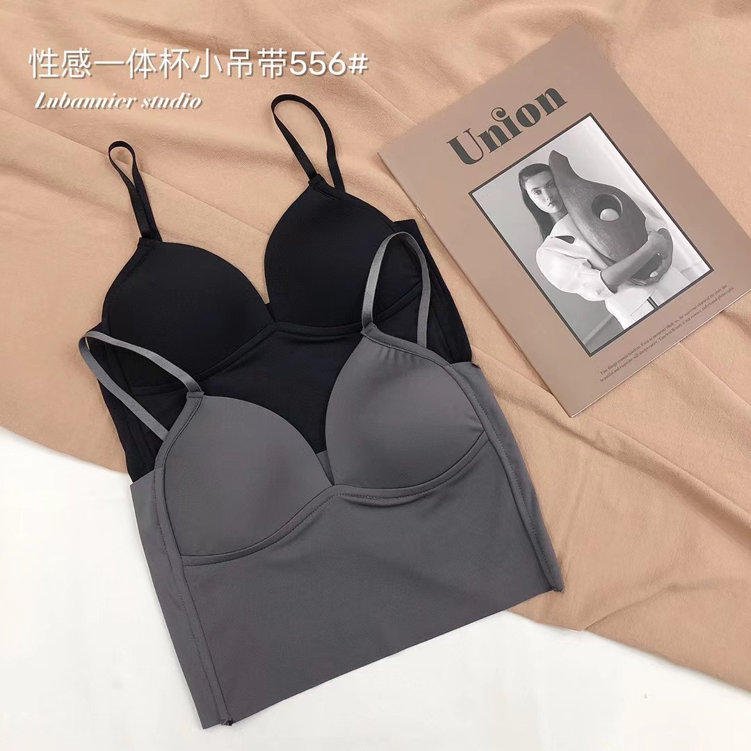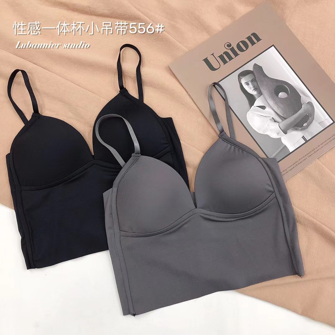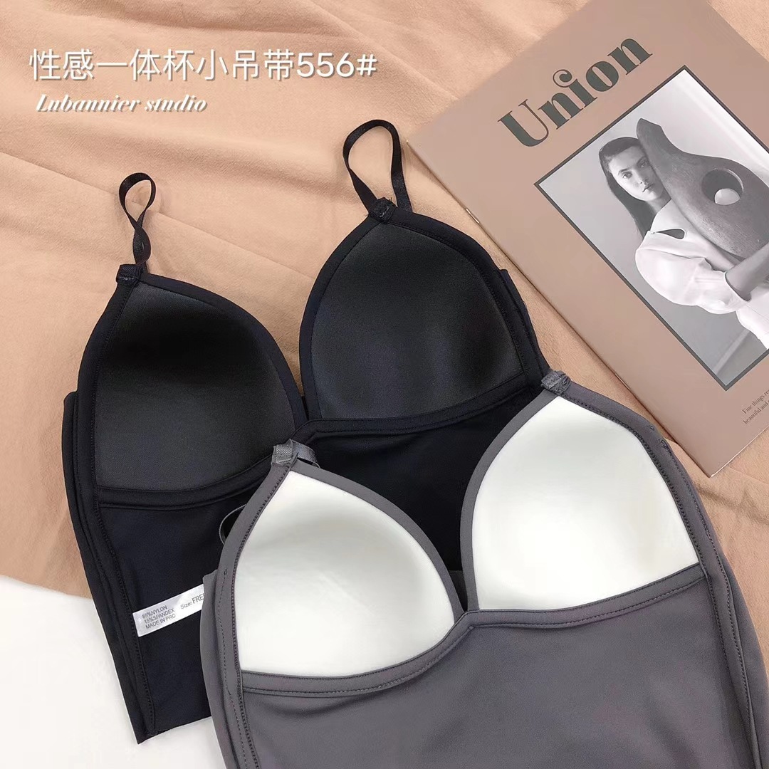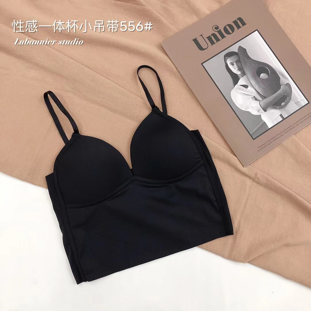 外贸法式冰丝美背吊带抹胸背心辣妹聚拢上托一体式罩杯裹胸上衣女