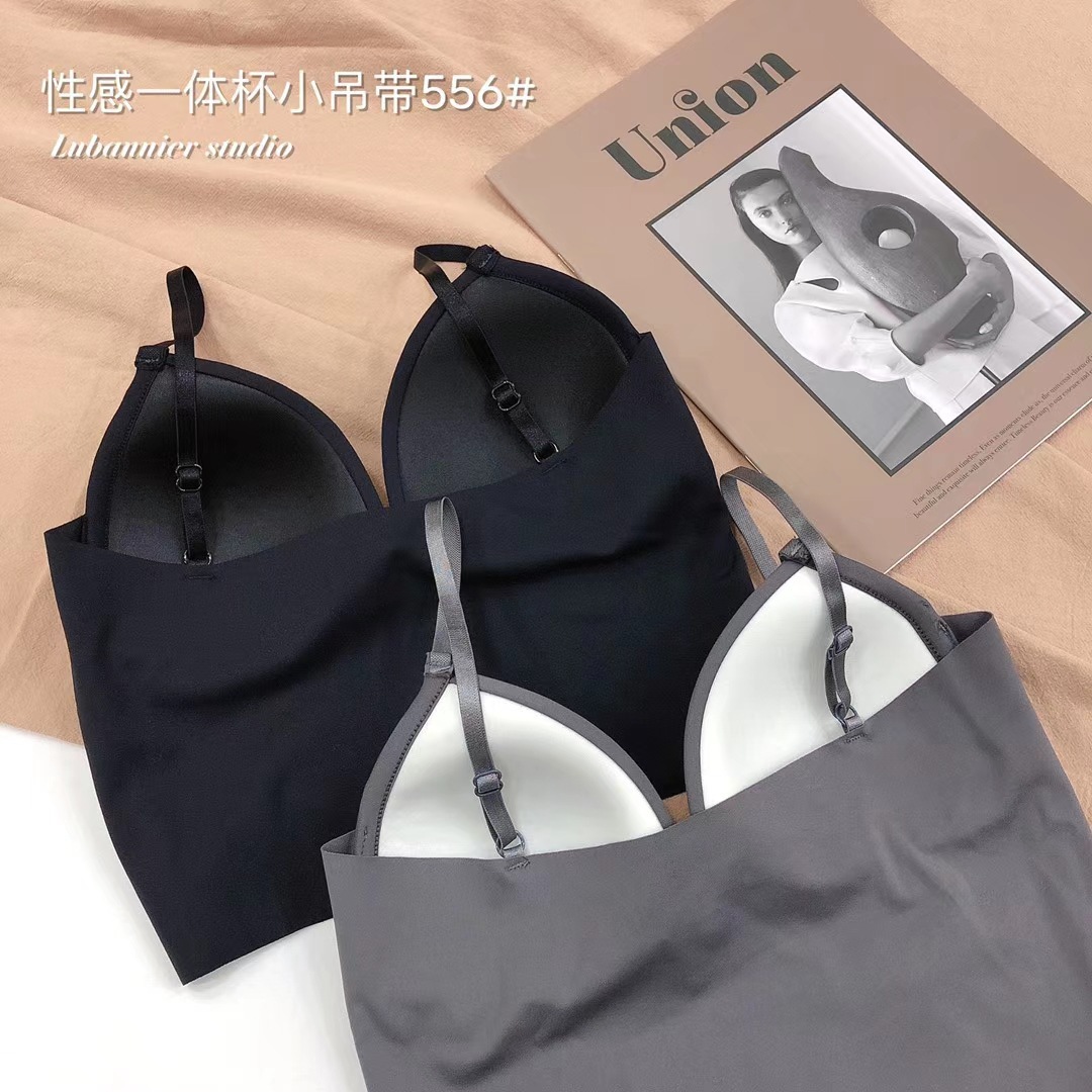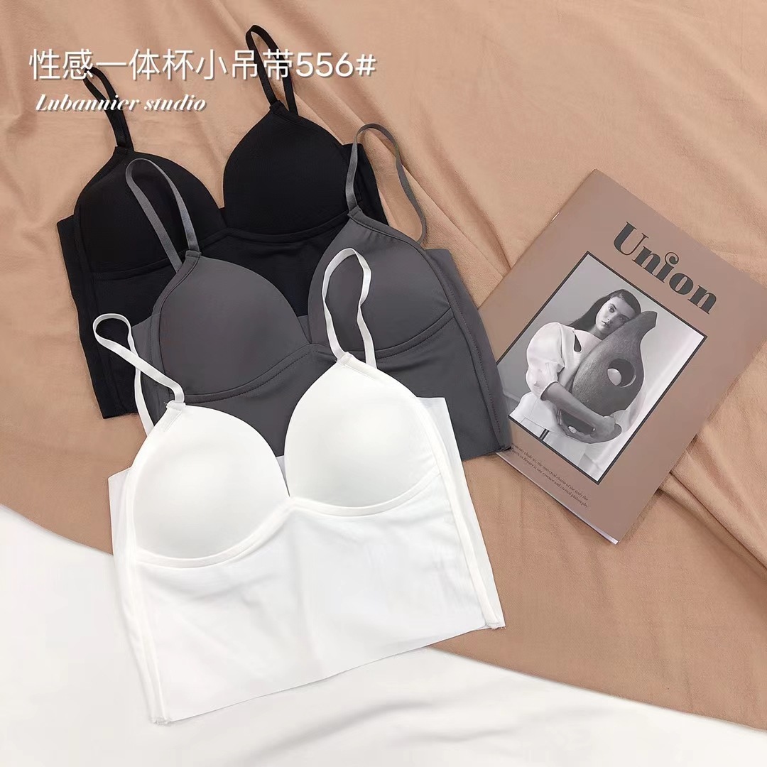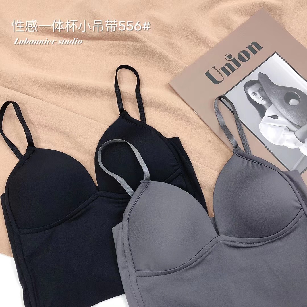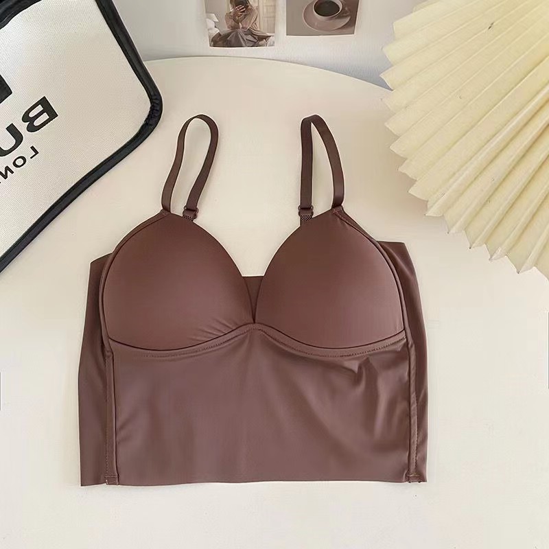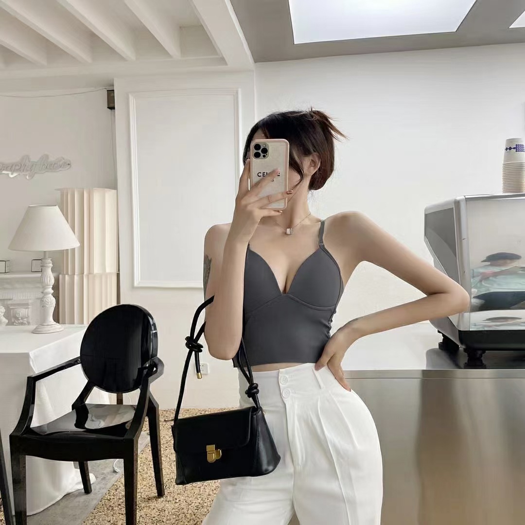 外贸法式冰丝美背吊带抹胸背心辣妹聚拢上托一体式罩杯裹胸上衣女