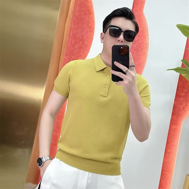 폴로 셔츠 니트 반팔 티셔츠 남자 2025 년 새 여름 쿨 솔리드 컬러 심플 반소매 래그 탑 트렌디스토어 가기