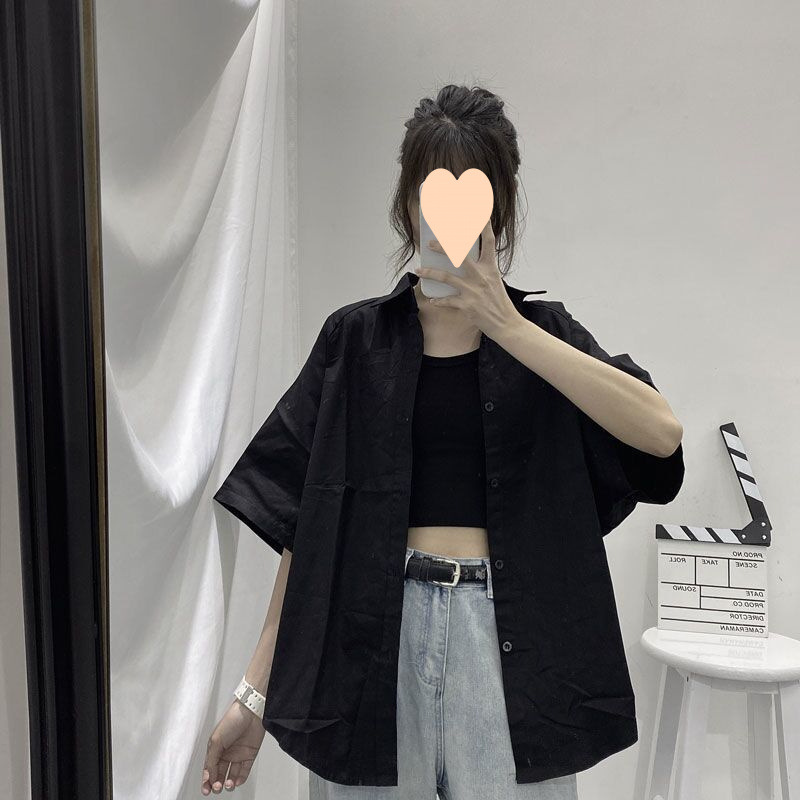 다크 스타일 솔리드 컬러 올 매치 반팔 셔츠 2025 여름 새로운 홍콩 스타일 셔츠 남자와 여자의 탑스토어 가기