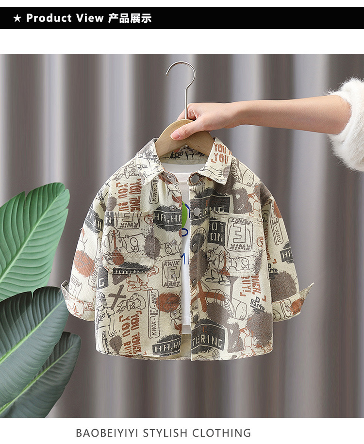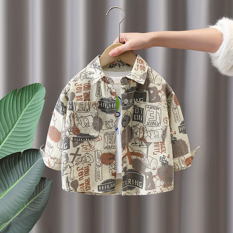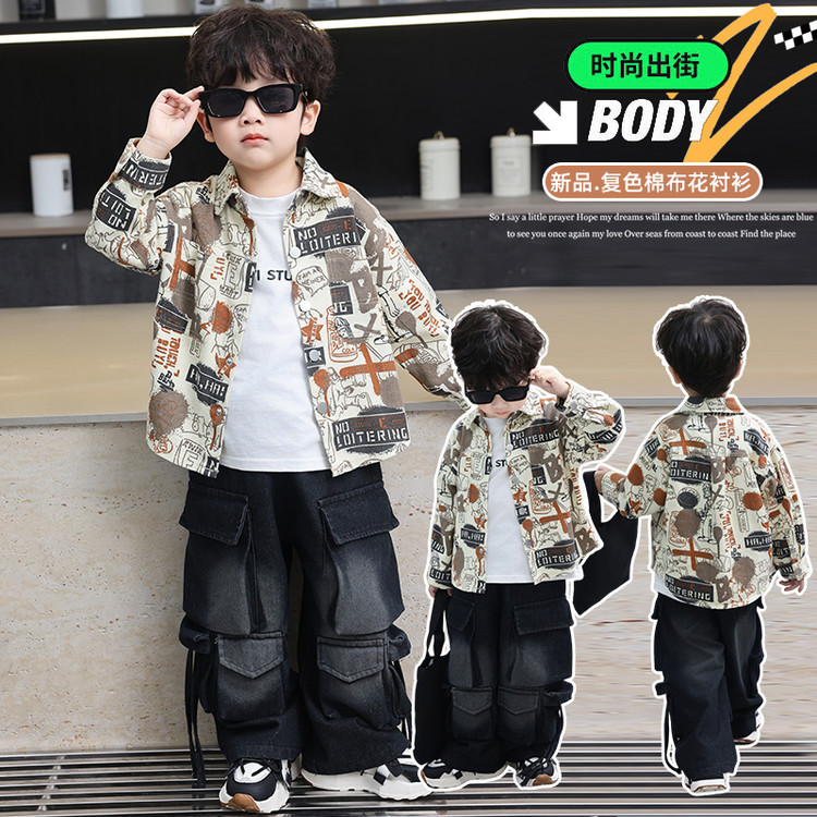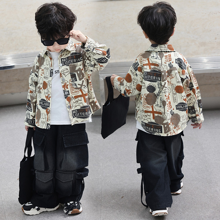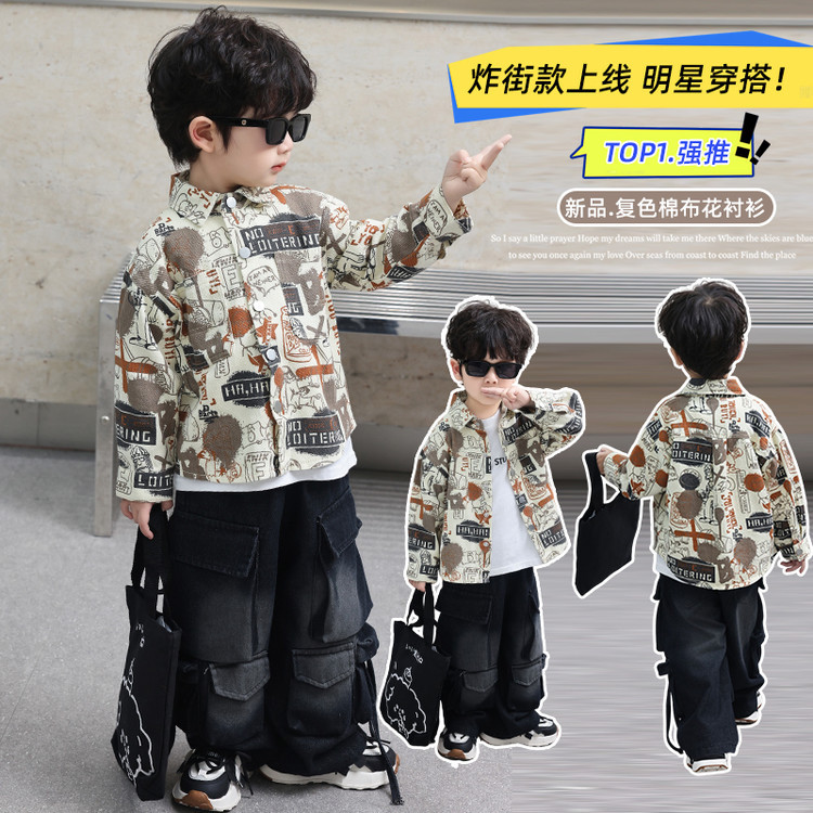 7748 소년 셔츠 재킷 서양식 어린이 옷 봄과 가을 인쇄 옷 2025 새로운 인터넷 연예인 튀김 거리 봄 옷