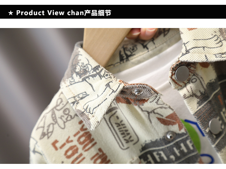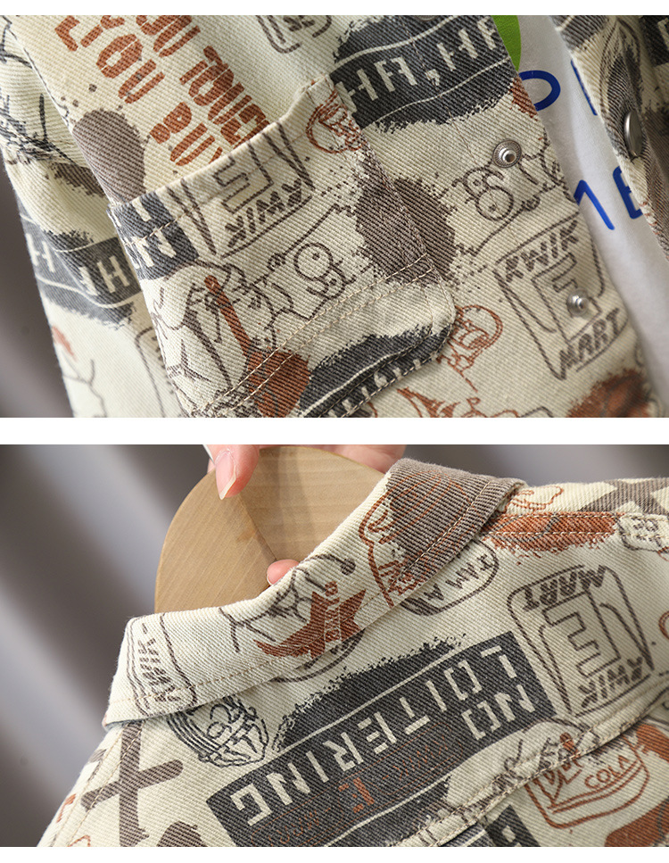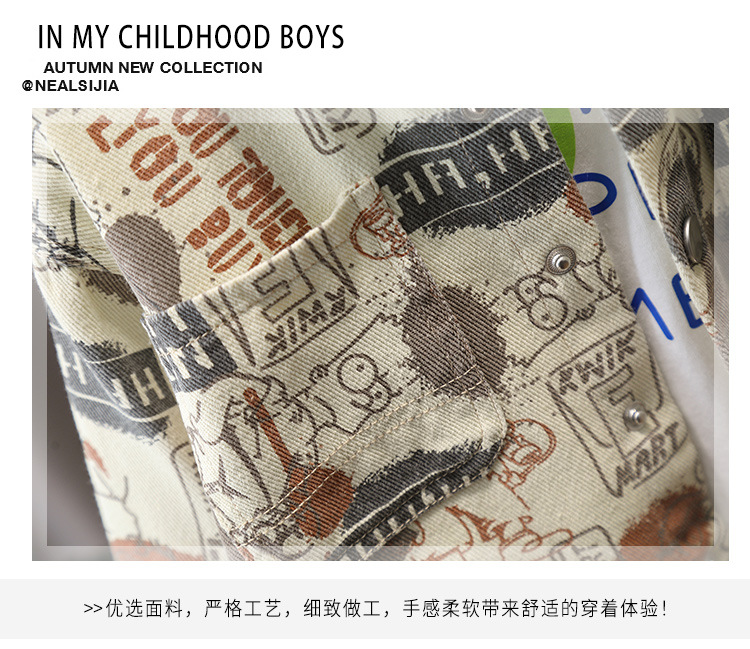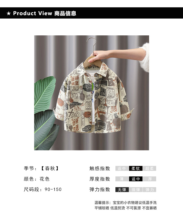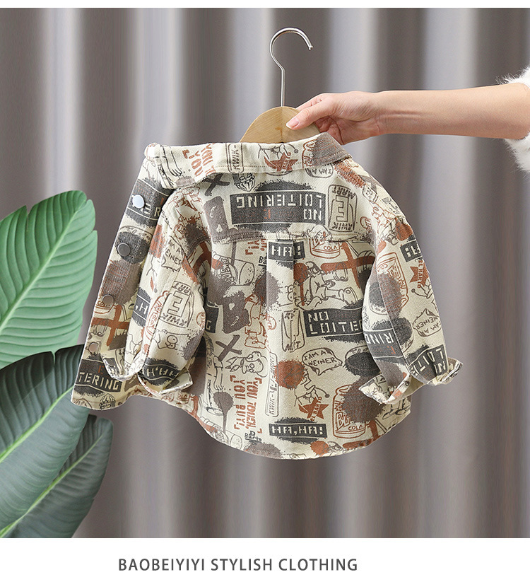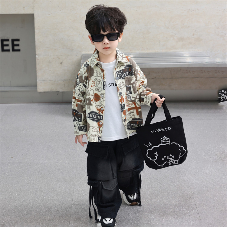 7748 소년 셔츠 재킷 서양식 어린이 옷 봄과 가을 인쇄 옷 2025 새로운 인터넷 연예인 튀김 거리 봄 옷