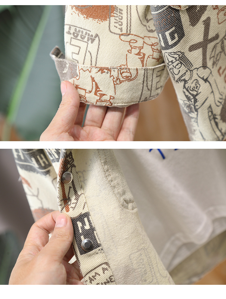 7748 소년 셔츠 재킷 서양식 어린이 옷 봄과 가을 인쇄 옷 2025 새로운 인터넷 연예인 튀김 거리 봄 옷스토어 가기