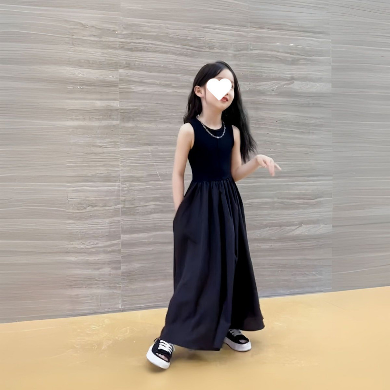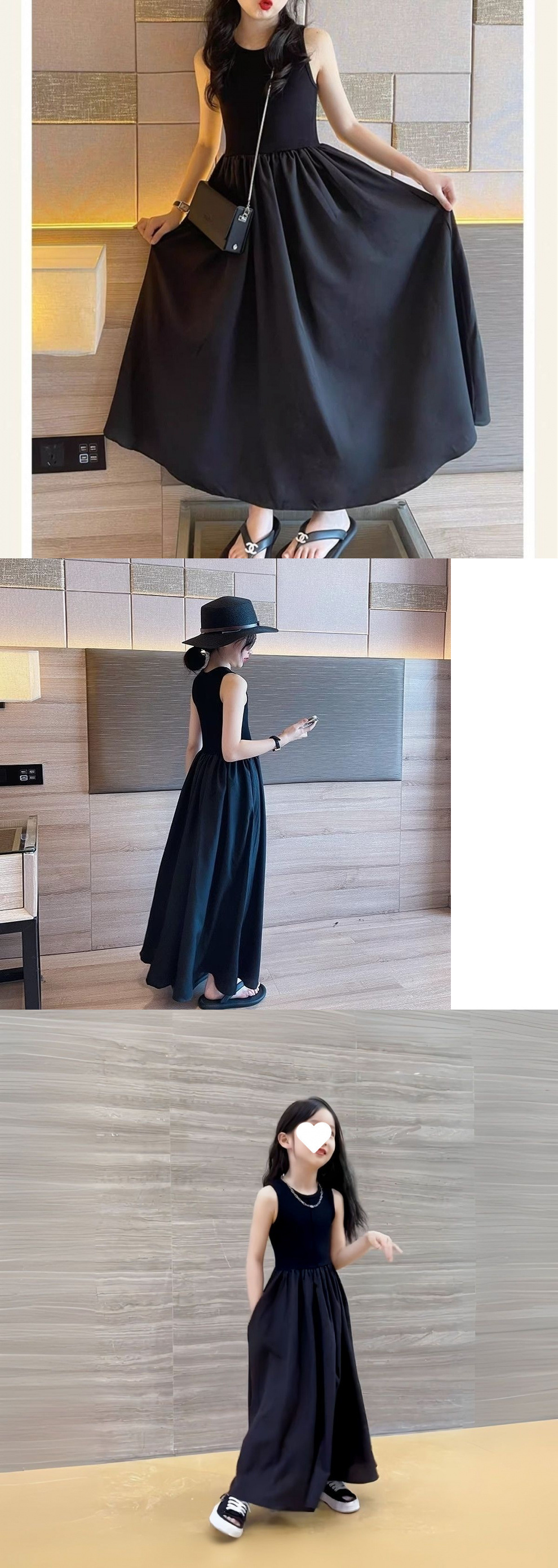 어린이 치마 여름 크루 넥 조끼 원피스 중 큰 어린이 여름 솔리드 컬러 민소매 어린이 서양식 롱 스커트스토어 가기