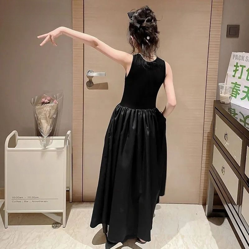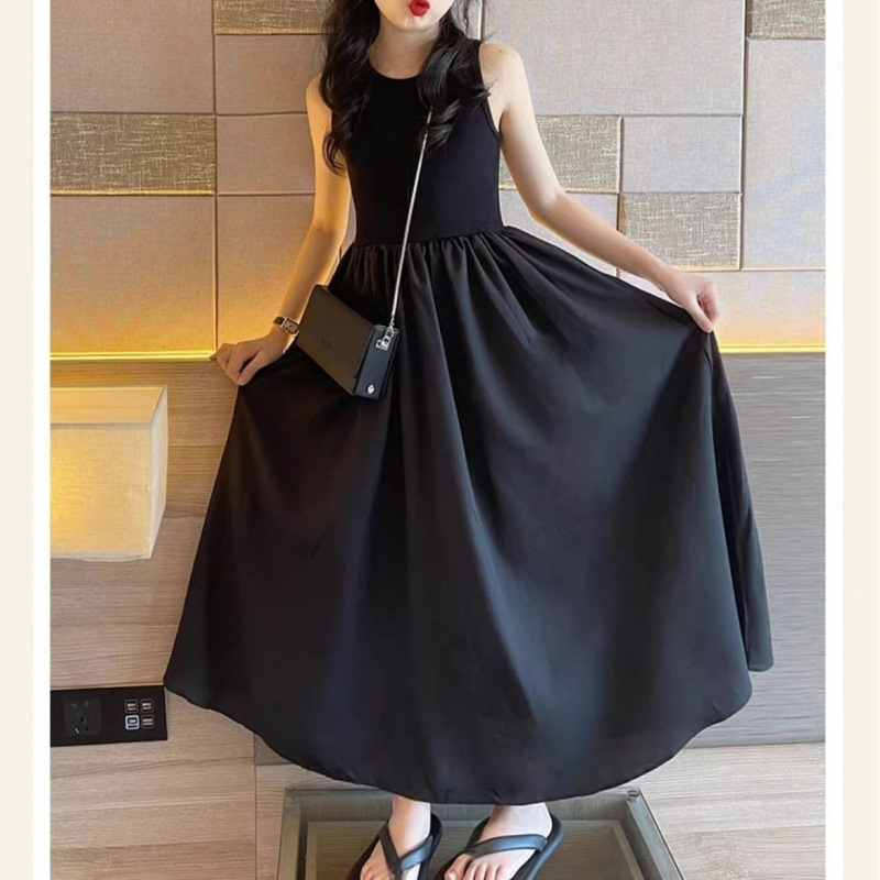 어린이 치마 여름 크루 넥 조끼 원피스 중 큰 어린이 여름 솔리드 컬러 민소매 어린이 서양식 롱 스커트