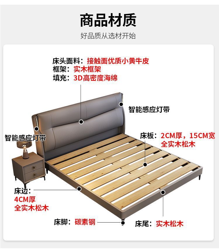• 고급 가죽 침대 + 20cm 독립 포켓 스프링 매트리스 + 캐비닛 2개