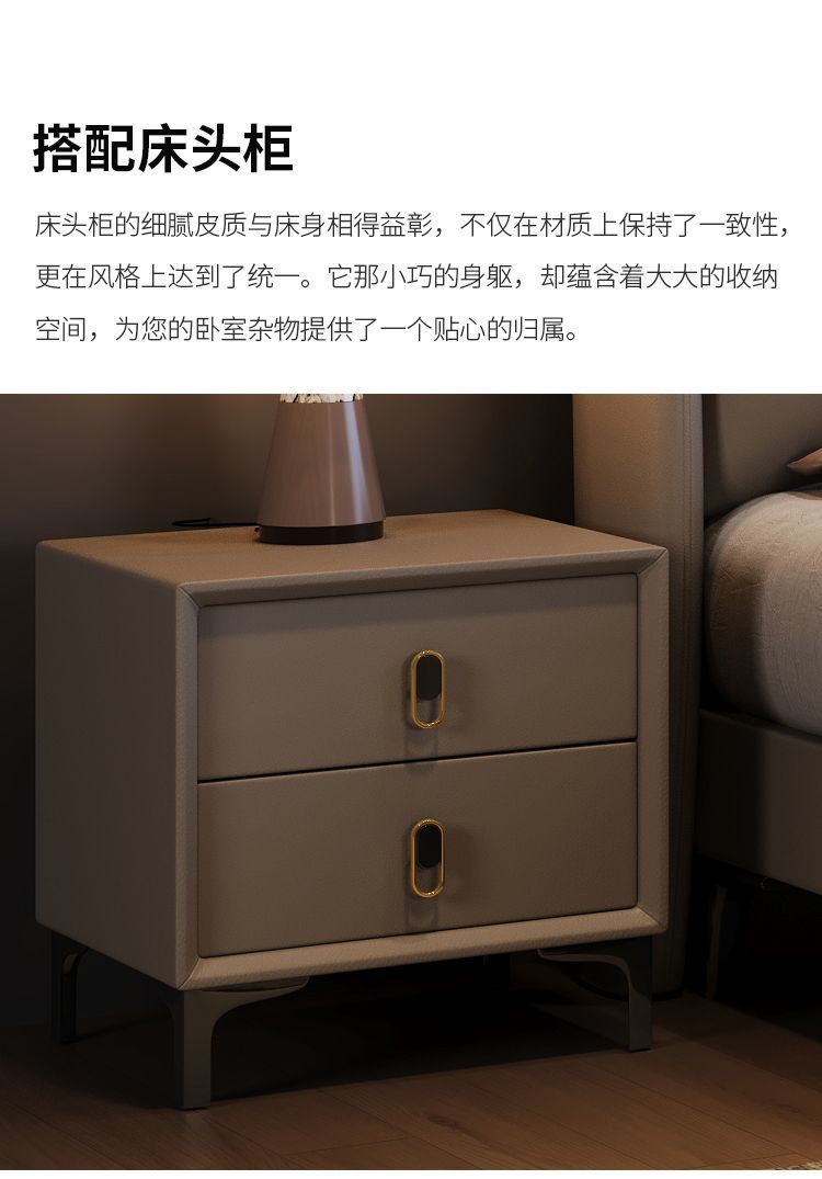 • 고급 가죽 침대 + 20cm 피부 친화적인 라텍스 매트리스 + 캐비닛 1개