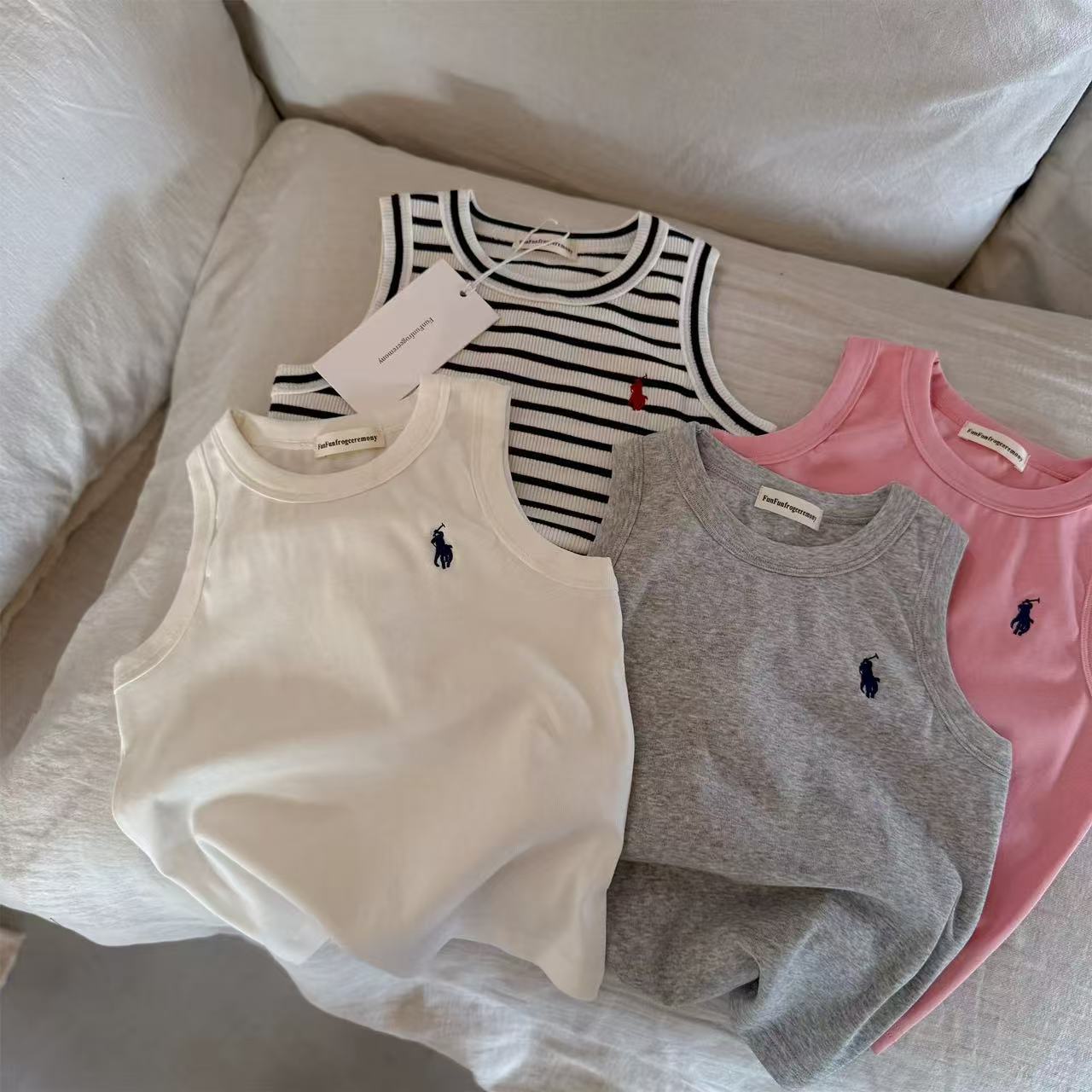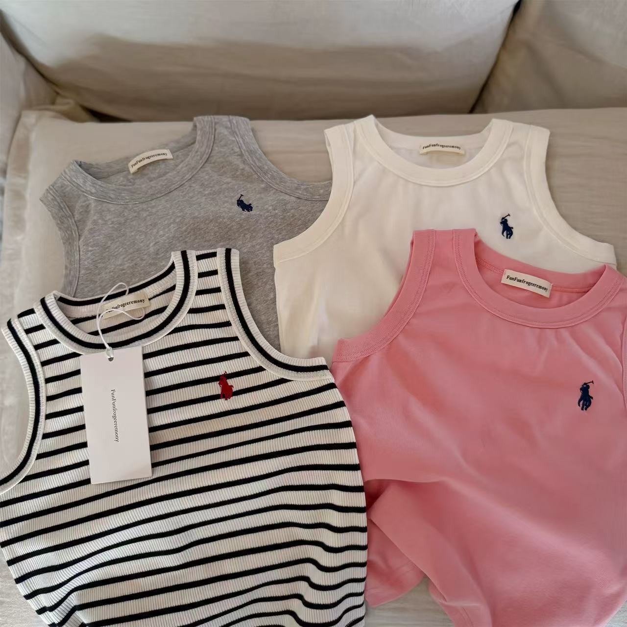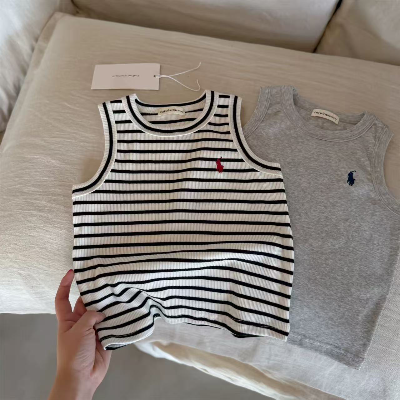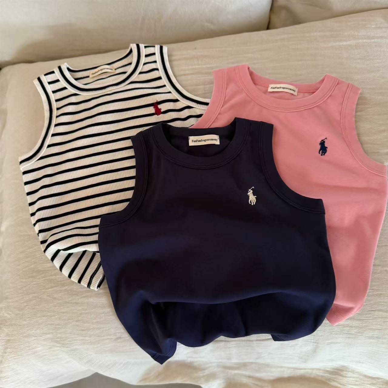 어린이 줄무늬 조끼 남자 여름 어린이 통기성 I 자형 조끼 유행 브랜드 아기의 민소매 단색 티셔츠 여성용 얇은스토어 가기