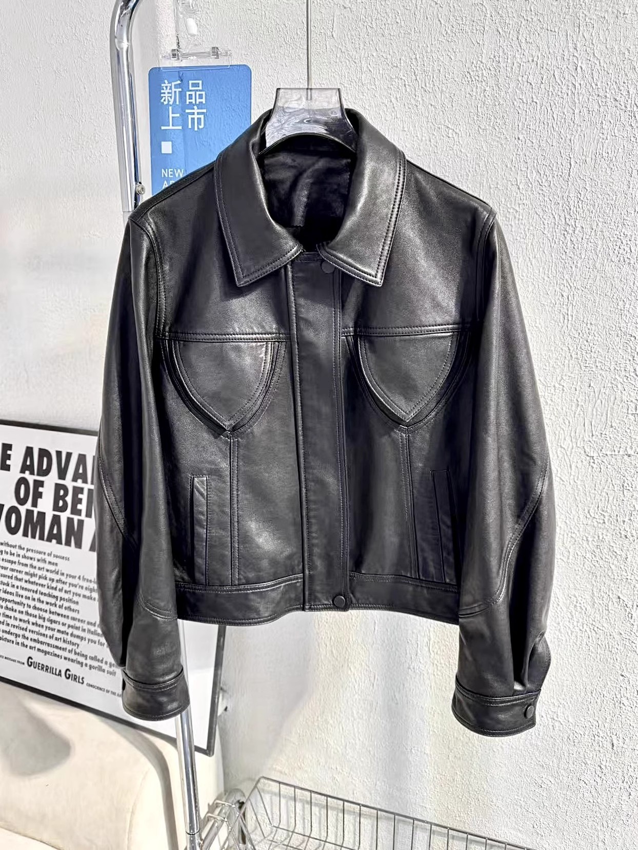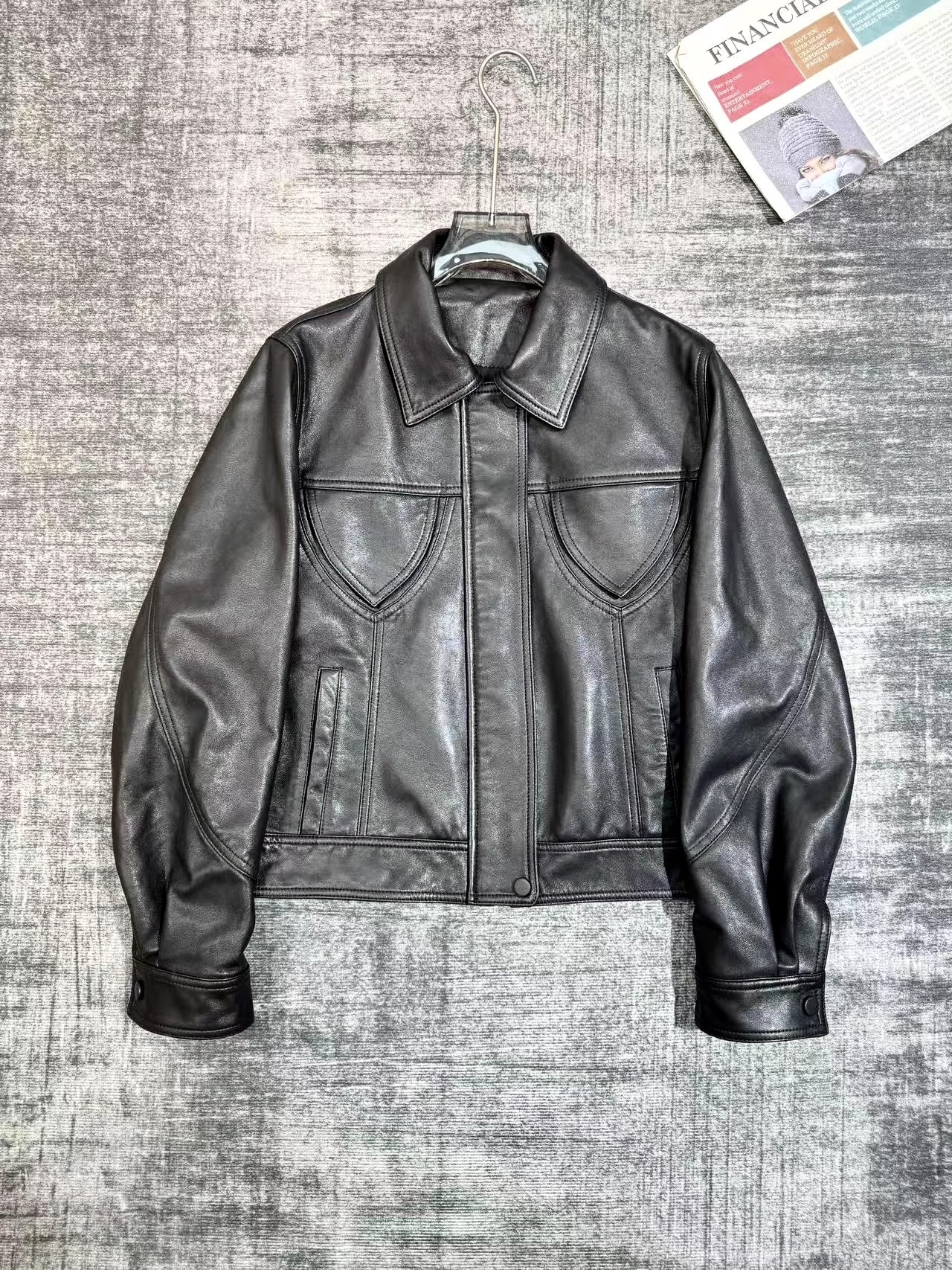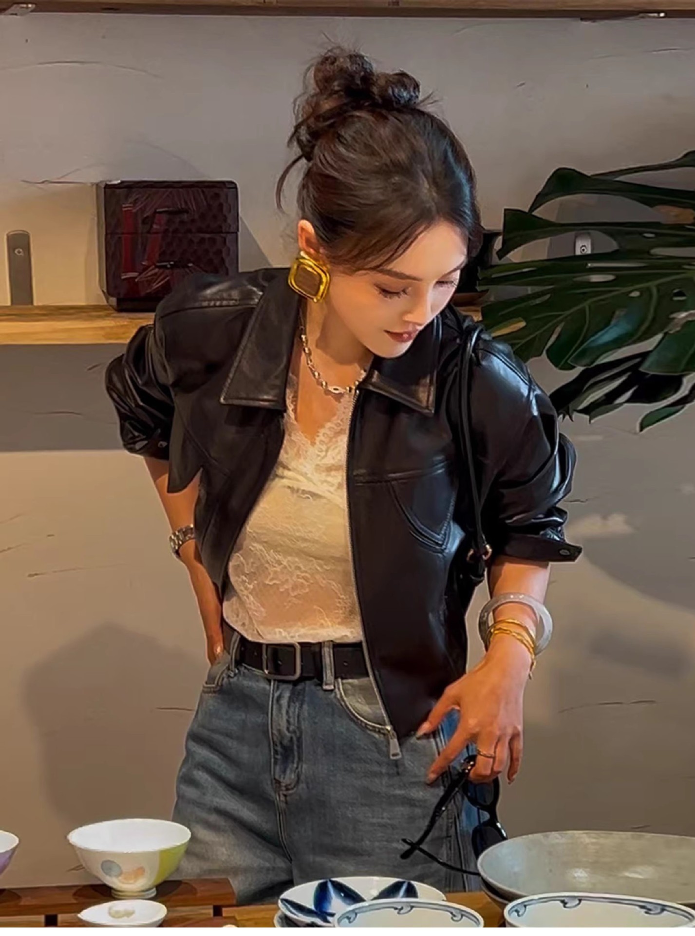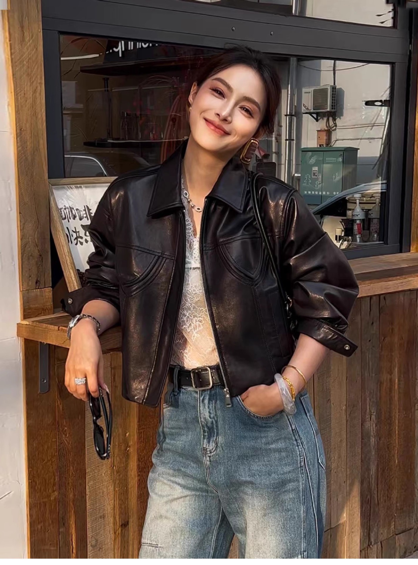 [빈티지 가죽] 미국 레트로 가죽 탑 레이어 야채 태닝 양가죽 짧은 재킷 코트 가죽 여성 2025스토어 가기